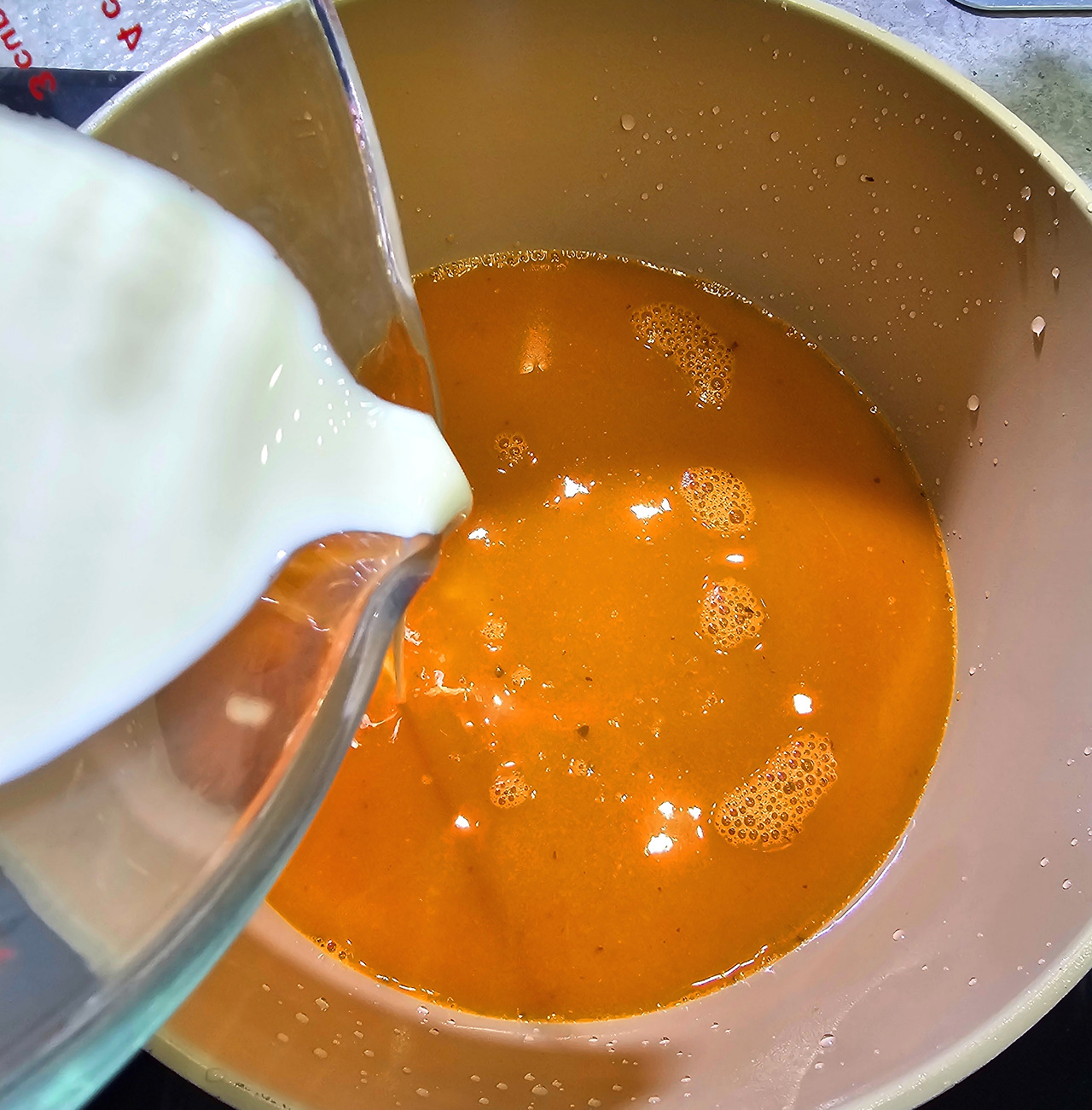 드디어 바질향의 토마토 크림 포타주가 완성이다.
