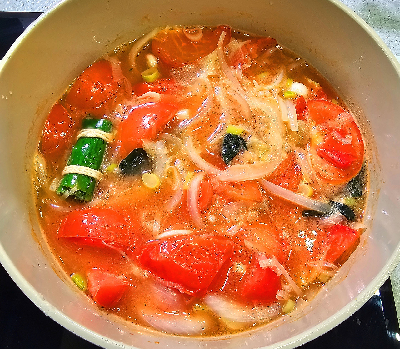 "내가 좋아하는 상큼한 토마토 맛이 많이 난다. 어제 맥주를 마셔서 속이 좋지 않았는데 해장으로도 좋은 것 같다. 비주얼이 예쁘고 수프에서 카프레제 같은 맛이 나서 좋다. 그리고 수프에서 생토마토 식감을 느낄 수 있어서 좋았다. 최근에 한 요리 중에서 가장 내 스타일이다." (칭찬 웬열?)