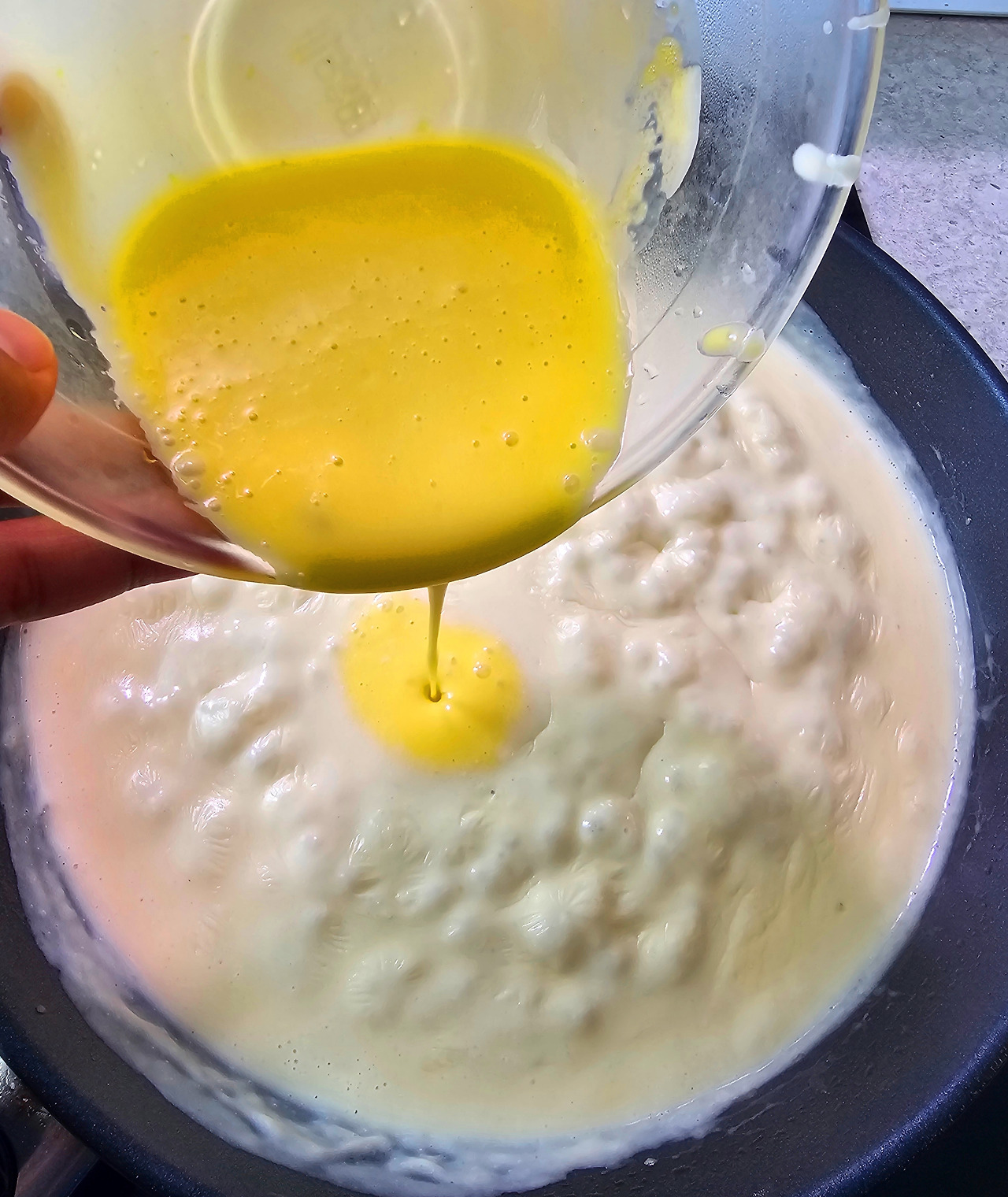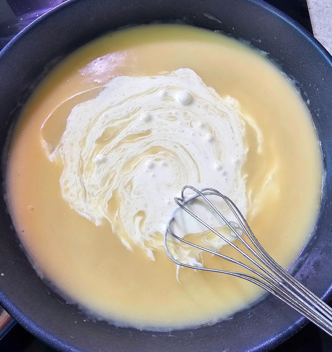 볼에 노른자를 풀고 소스를 조금 넣어서 섞어 준 다음 원래 소스에 다시 붓는다. 소금과 후춧가루로 간을 해주고 레몬즙을 넣은 후 체에 걸러 쉬프렘 소스를 완성한다.