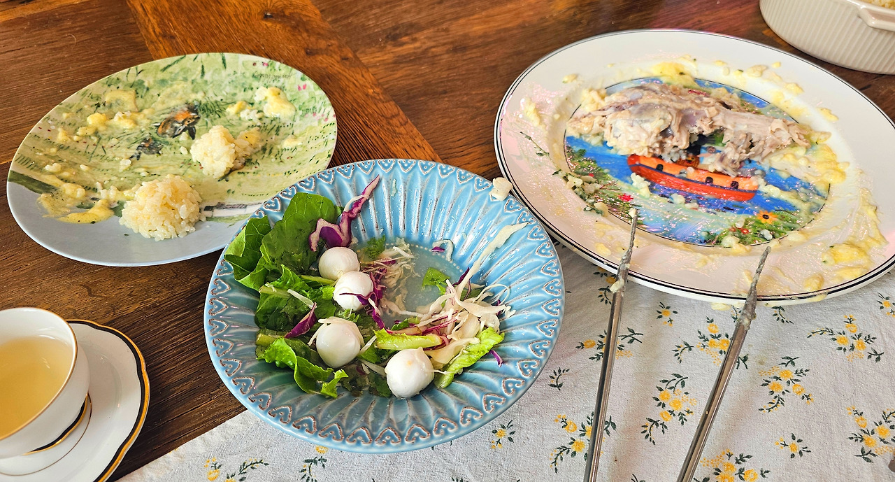 요리를 하면서 마치 우리나라 삼계탕이 떠올랐다. 국물이 없는 삼계탕이라 해도 과언이 아닐 정도로 유사해서 더욱 보양식처럼 느껴졌다.