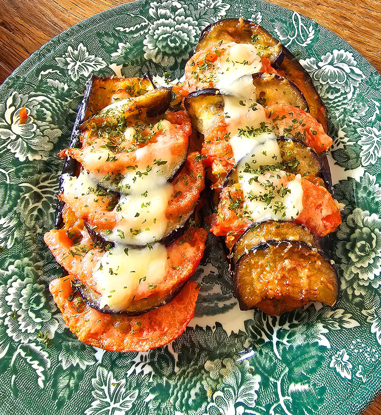 가지를 반달로 잘라서 팬에 넣고 올리브오일을 부어 팬에 볶아준다. 그리고 토마토는 껍질을 벗기고 역시 반달로 썰어준다. 가지에 속을 가득 채워주고 그 위에 반달 토마토, 가지를 차례로 얹어준다. 마지막으로 그뤼에르치즈를 눈꽃처럼 뿌려준다. (강판을 이용해 치즈를 갈 때는 꼭 손 조심하자. 나처럼 치즈 대신 손을 갈 수 있다. 뼈가 보이는 것 같아.)