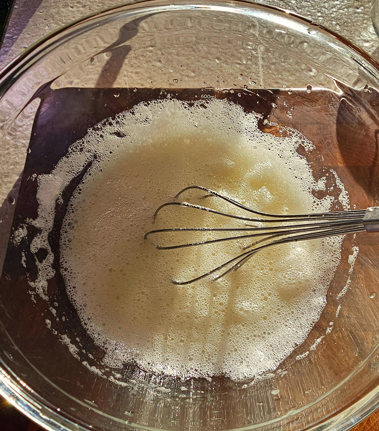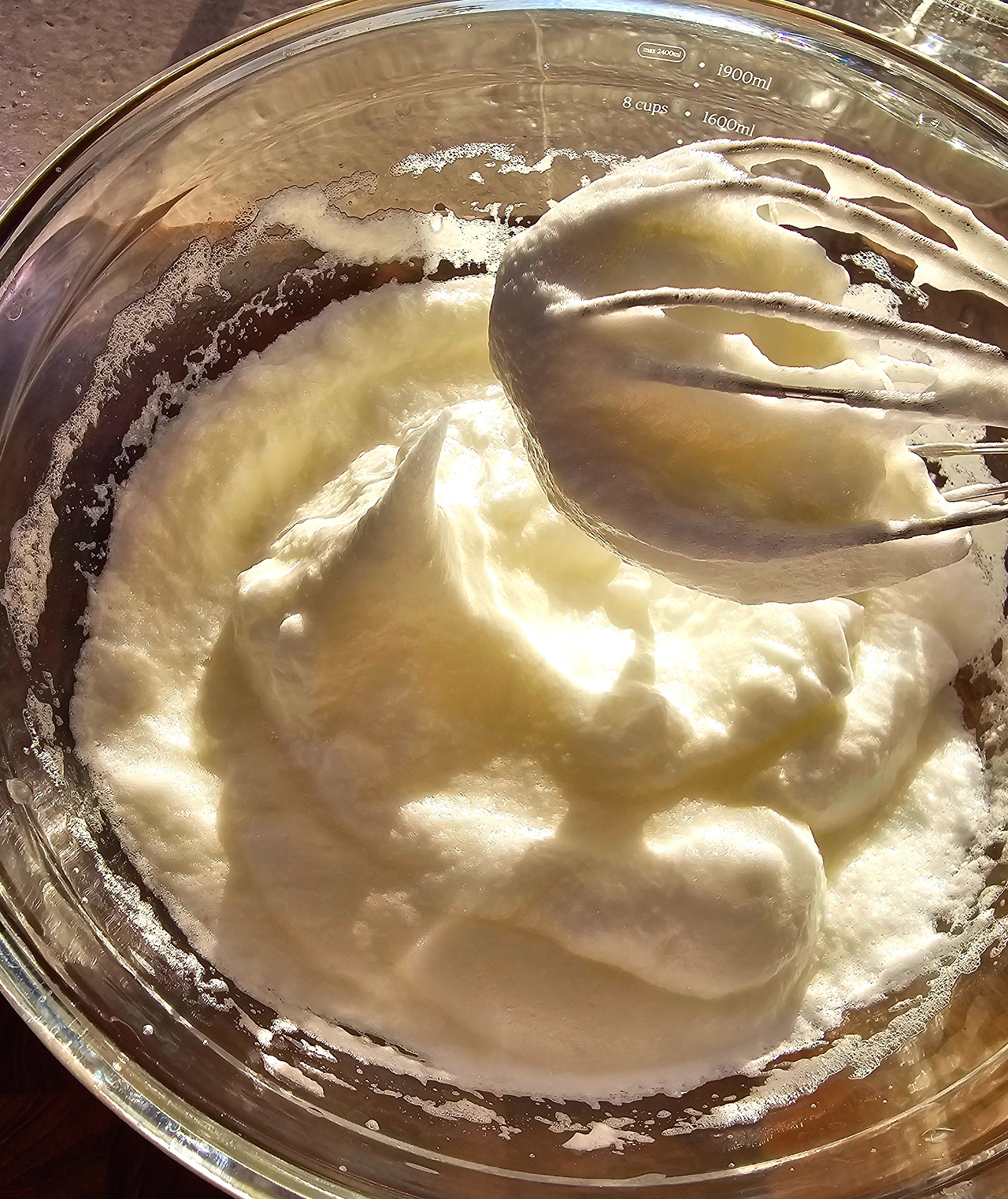 볼에 달걀흰자를 넣고 거품기로 거품을 낸다. 한참 거품기로 저으면 거품이 나기 시작하는데 이때 설탕을 넣는다. 팔운동 하듯 열심히 거품기를 저으면 걸쭉한 거품이 만들어지는데 거품기로 들어 올렸을 때 뾰족한 형상이 나타나면 끝난 것이다.