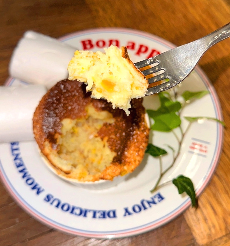 "오렌지맛과 향이 엄청 세지만 의외로 양이 적다. 오렌지 껍질 특유의 화한 맛이 느껴진다. 냄새는 끝내주게 너무 좋고 수플레 속이 엄청 촉촉하다. 평소 빵에 과일이 섞여 있는걸 안 좋아하는데 이건 거부감이 없다. 단 거 좋아하는 사람은 끝없이 들어갈 것 같다.