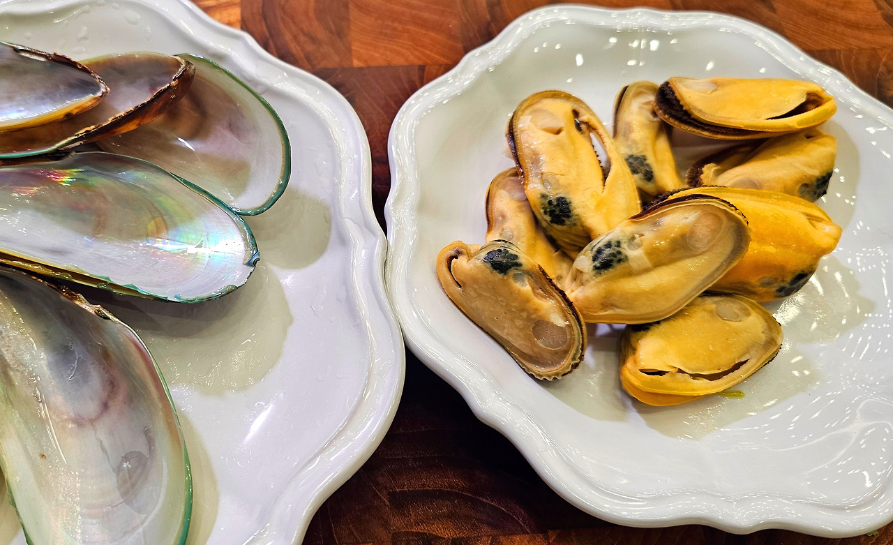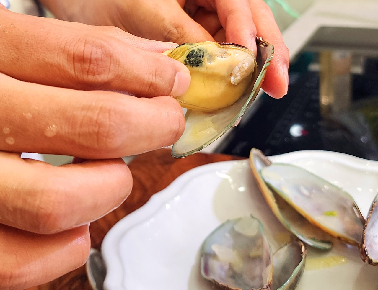 홍합은 국내산과 뉴질랜드산 둘 다 먹어보니 역시 살이 통통하고 큰 뉴질랜드산이 식감 측면에서는 더 좋았다. 반면 국내산에서 좀 더 바다내음을 느낄 수 있었다. 이건 생물이나 아니냐의 차이인 듯하다.