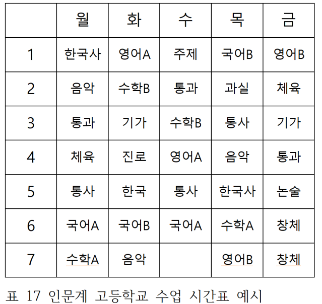 하지만 안타깝게도 학교에서는 학생들이 기다리는 이 하루를 온전히 내버려 두지 않을 때도 있습니다. 공휴일이 특정 요일에 몰려 일부 교과의 수업 시수가 모자라는 경우, 이날 7교시에 부족한 시수의 수업을 보충합니다. 혹은 학교의 각종 대회를 6교시 수업만 있는 날의 7교시로 잡아 운영합니다. 소수의 대회 참가 학생들을 위해 교과 수업 한 시간을 통으로 빼는 것이 미참여 학생들의 학습권에 영향을 주어 부담스럽기 때문입니다. <일반적인 인문계 고등학교의 사례입니다.>