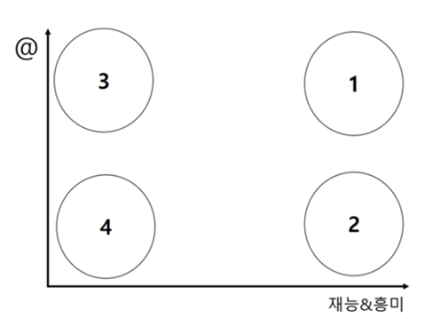 @에는 올바름, 옳음, 선함, 성실, 꾸준함, 노력, 인내, 효 등 우리가 잘 아는 좋은 가치들이 들어가야 합니다. 이것과 재능&흥미의 접점이 결합되면 성공한 사람을 넘어 존경받는 사람이 될 수 있는 것입니다.