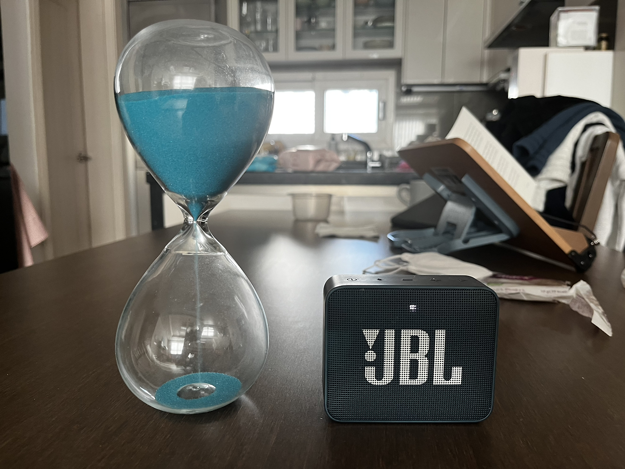 먼저, 30분 모래시계, 블루투스 스피커를 준비한다.