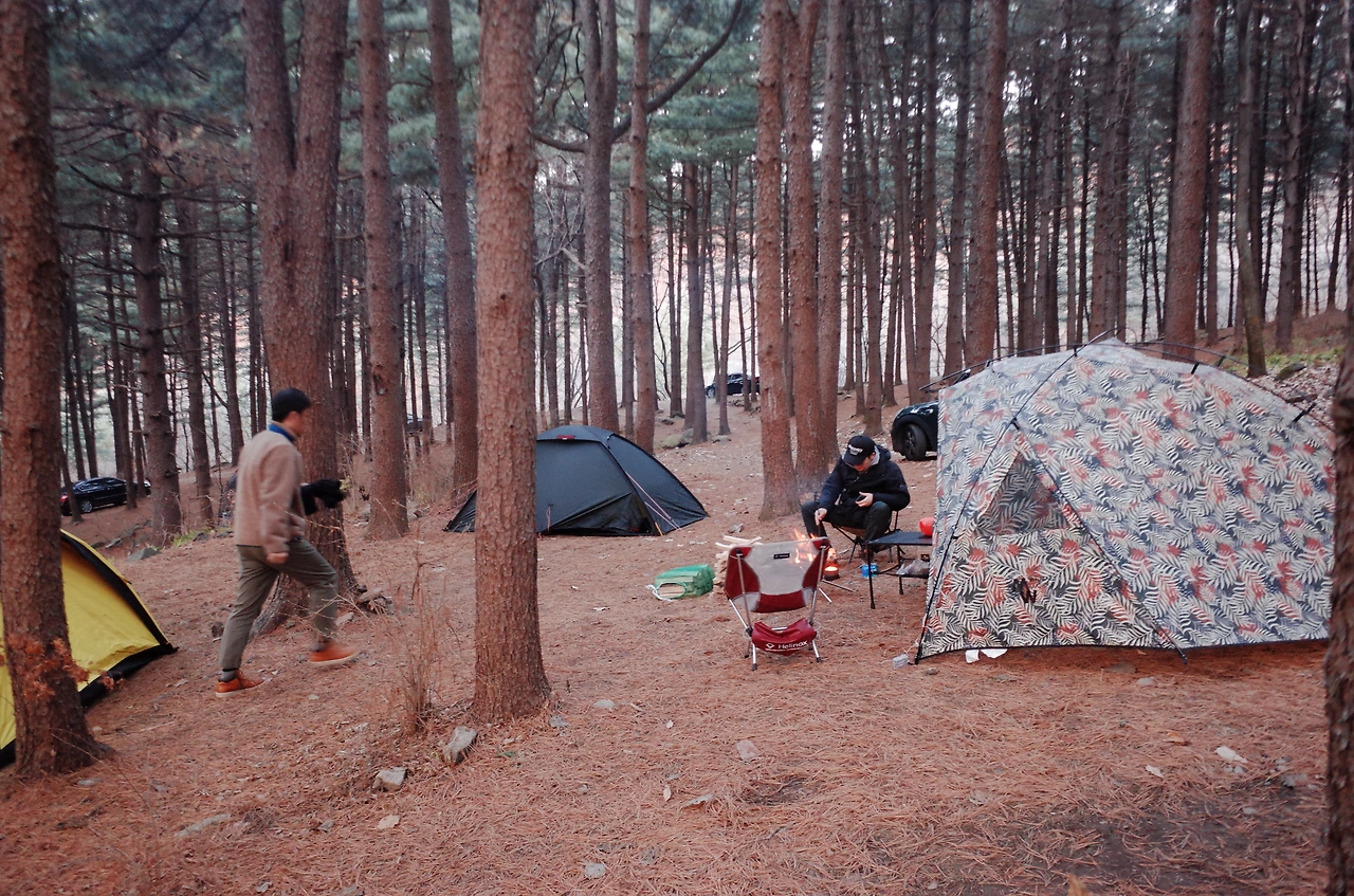 오토캠핑장이지만 백패킹 못지않은 잣나무 숲에서 하루를 보낼 수 있다는 것이