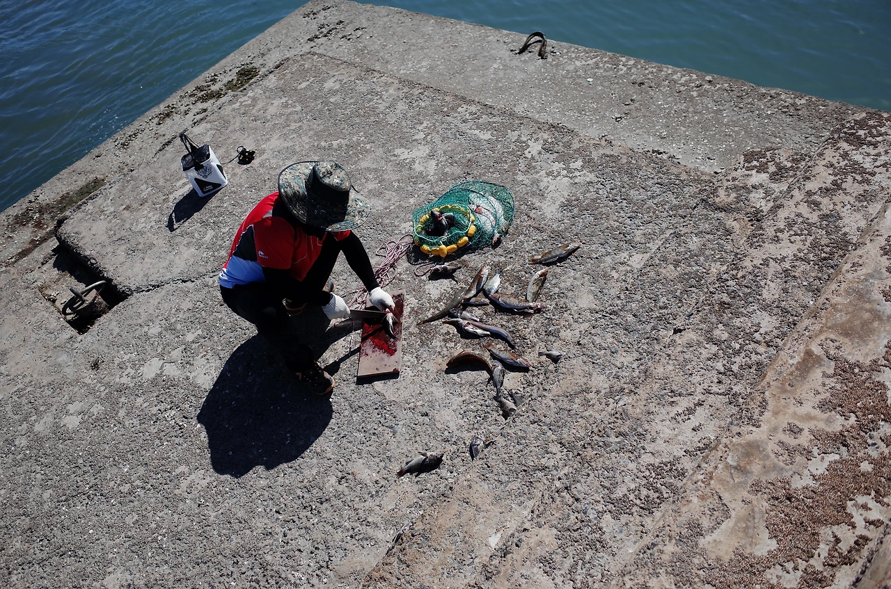선착장에 주민 한 분께서 물고기를 손질하고 계셨다.