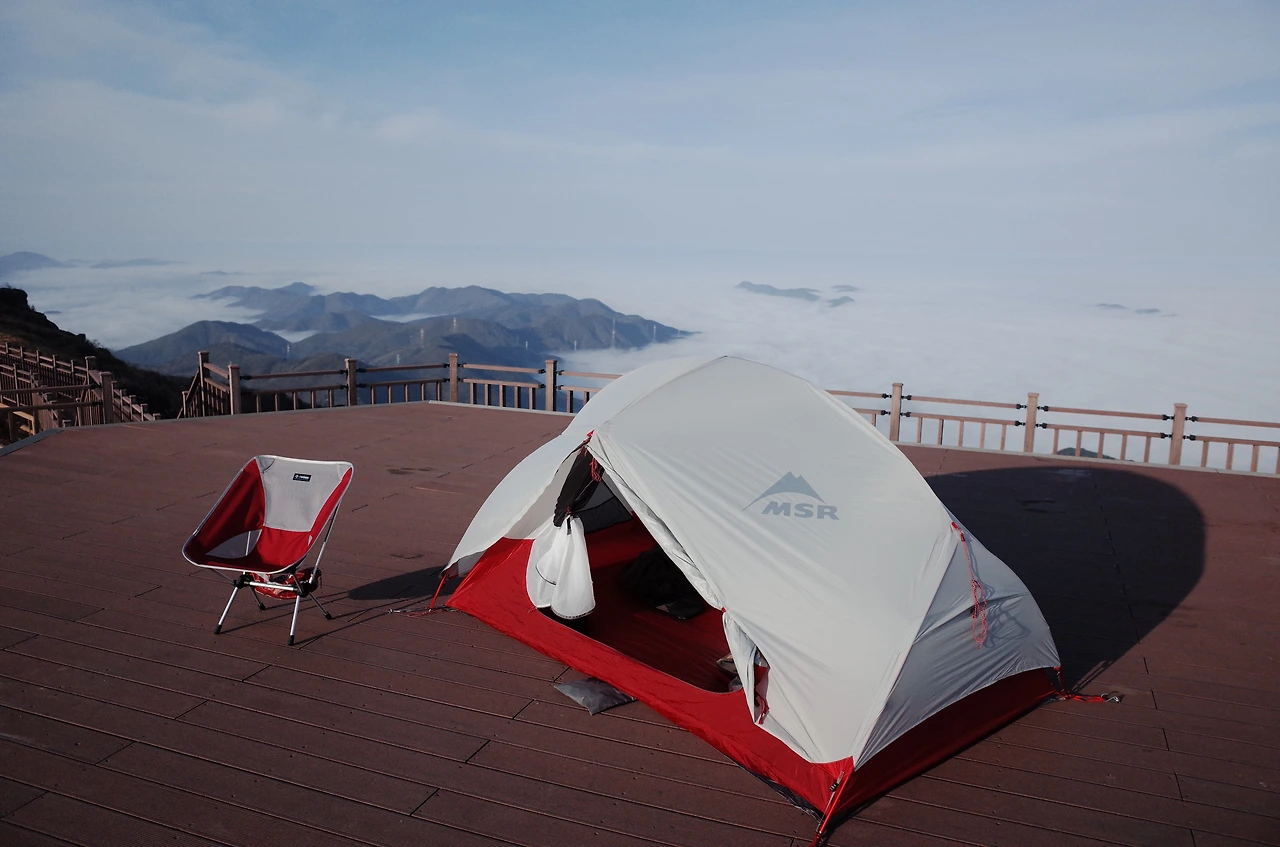 오늘따라 사람이 하나도 없다. 해가 지기전이고 등산객이 올라올 수 있기 때문에 텐트는 일몰 전에 피칭하기로 했다.