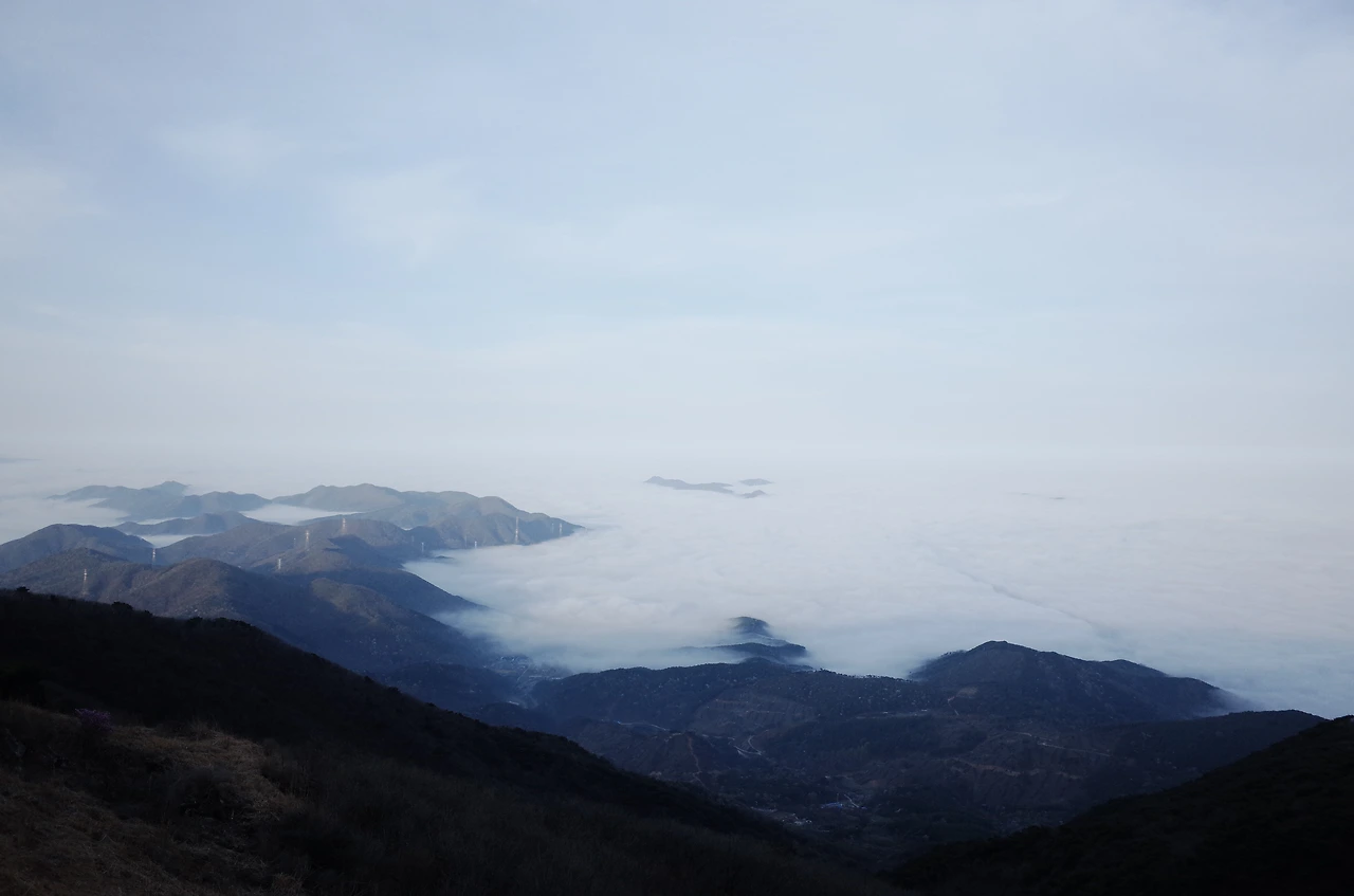 말로만 듣던 운해다. 해가 떠오르기 직전 새하얀 구름이 산아래 깔려있다. 등산을 다니면서는 절대 볼 수 없었던