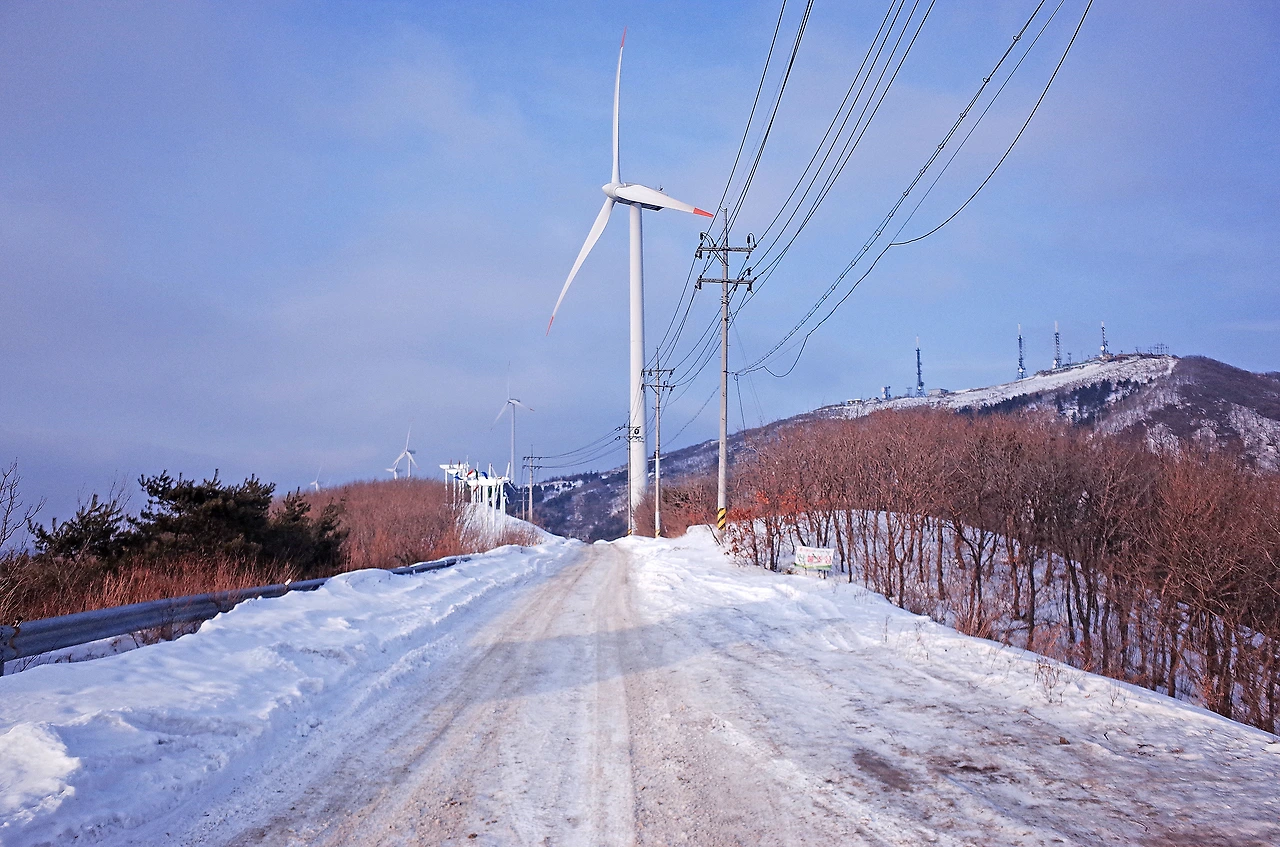 태기산 초입에는 녹아내린 눈과 흙이 뒤섞여서 진흙탕이 되어 있었다. 생각했던 그림과는 달랐지만 점점 개이는 하늘과 힘차게 돌아가는 풍력 발전기를 보면서 계속 발걸음을 옮겼다.