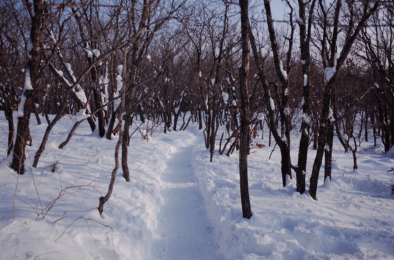 눈은 많이 쌓여있지만 한겨울보다는 확실히 따뜻한 날씨다. 산속에서의 날씨는 변화무쌍해서 우모 바지까지 챙겨 왔더니 전혀 추위를 느끼지 못했다. 그래도 신발을 벗으면 발이 시린 건 여전하다.