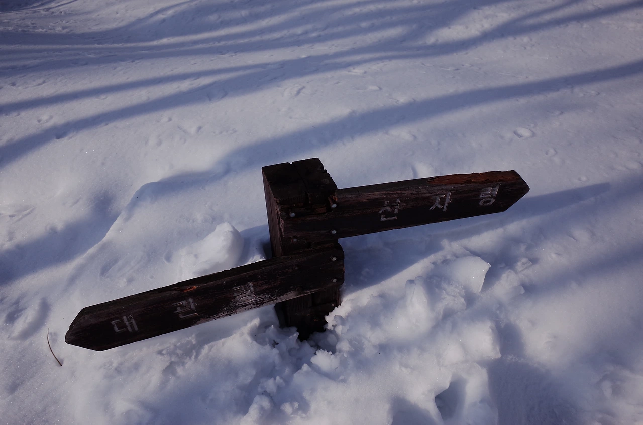 표지판을 보면 눈이 얼마나 쌓여있는지 짐작할 수가 있다. 표지만 머리만 간신히 머리를 내민 것을 보니 그동안 꽤나 눈이 많아 왔다는 걸 알 수 있다.