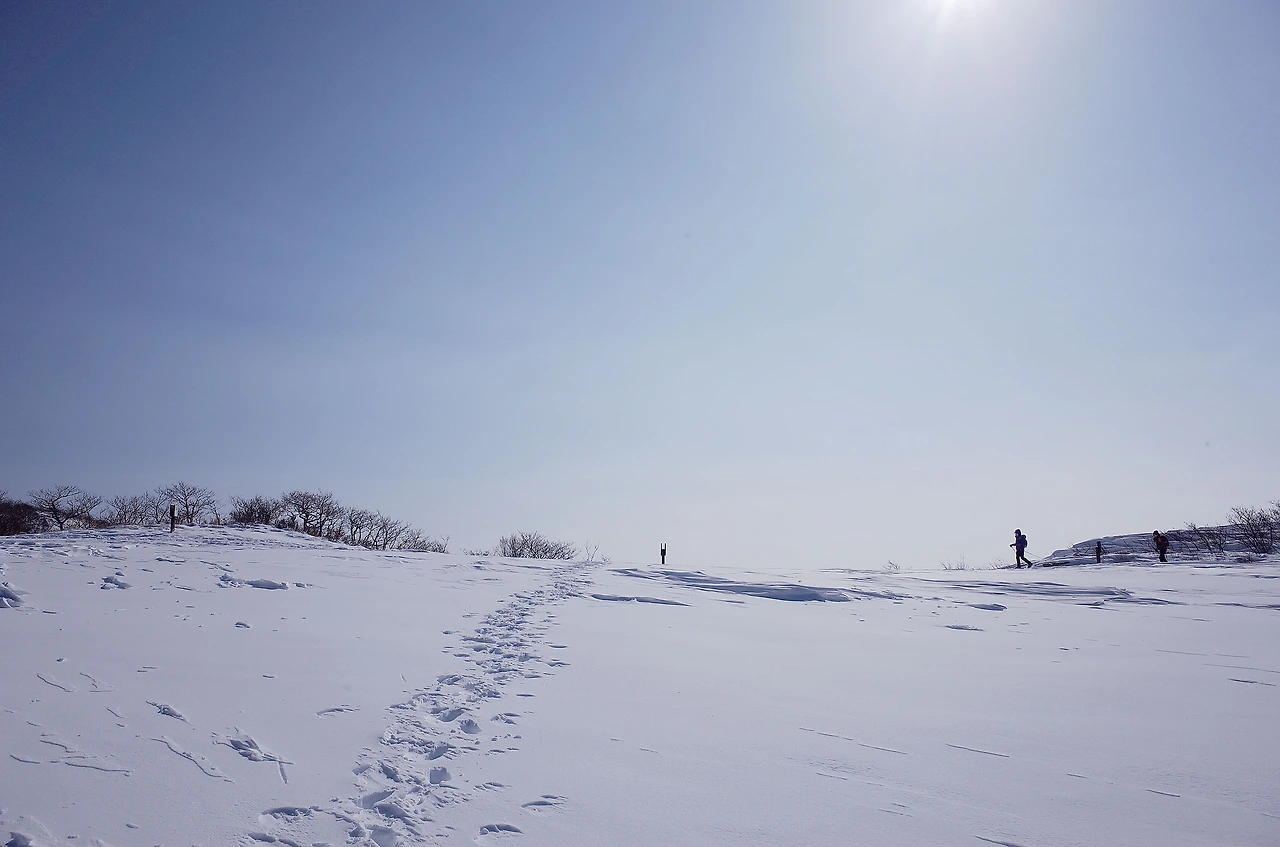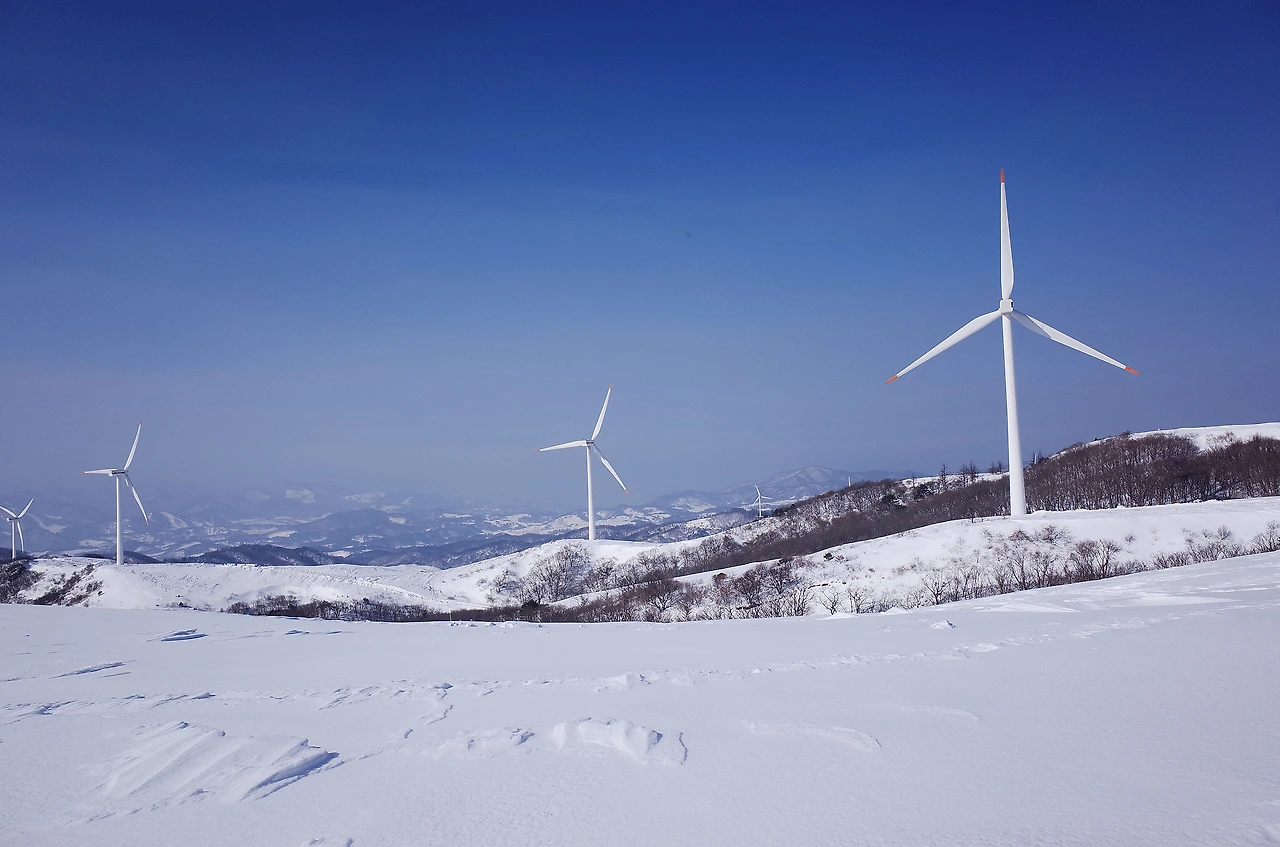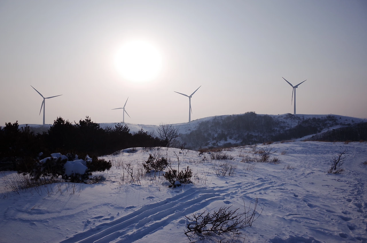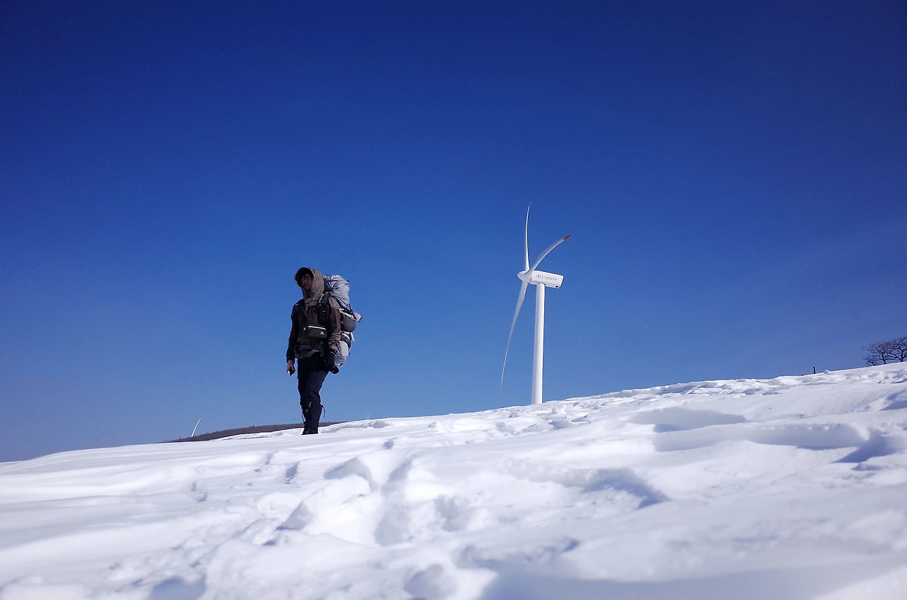 저 멀리 바람의 언덕의 상징인 풍력발전기가 보이기 시작한다. 얕은 능선길로 이어진 설경과 바람개비 때문에 언제부턴가 선량령의 눈꽃 산행지로 유명세를 떨치고 있다.