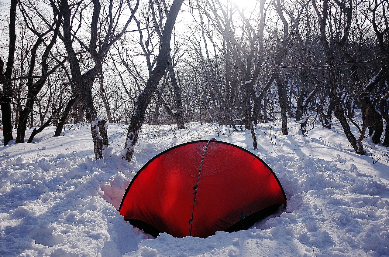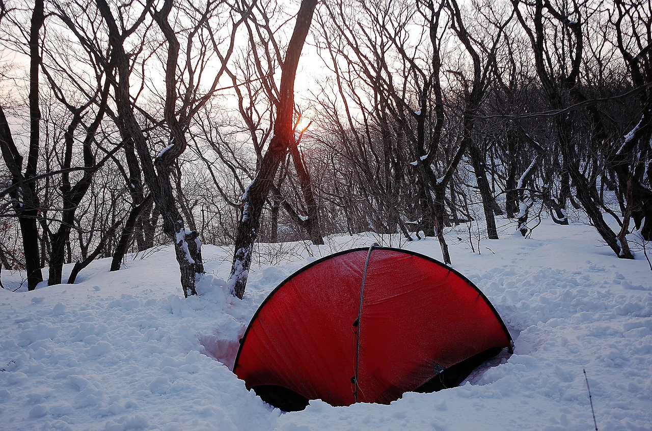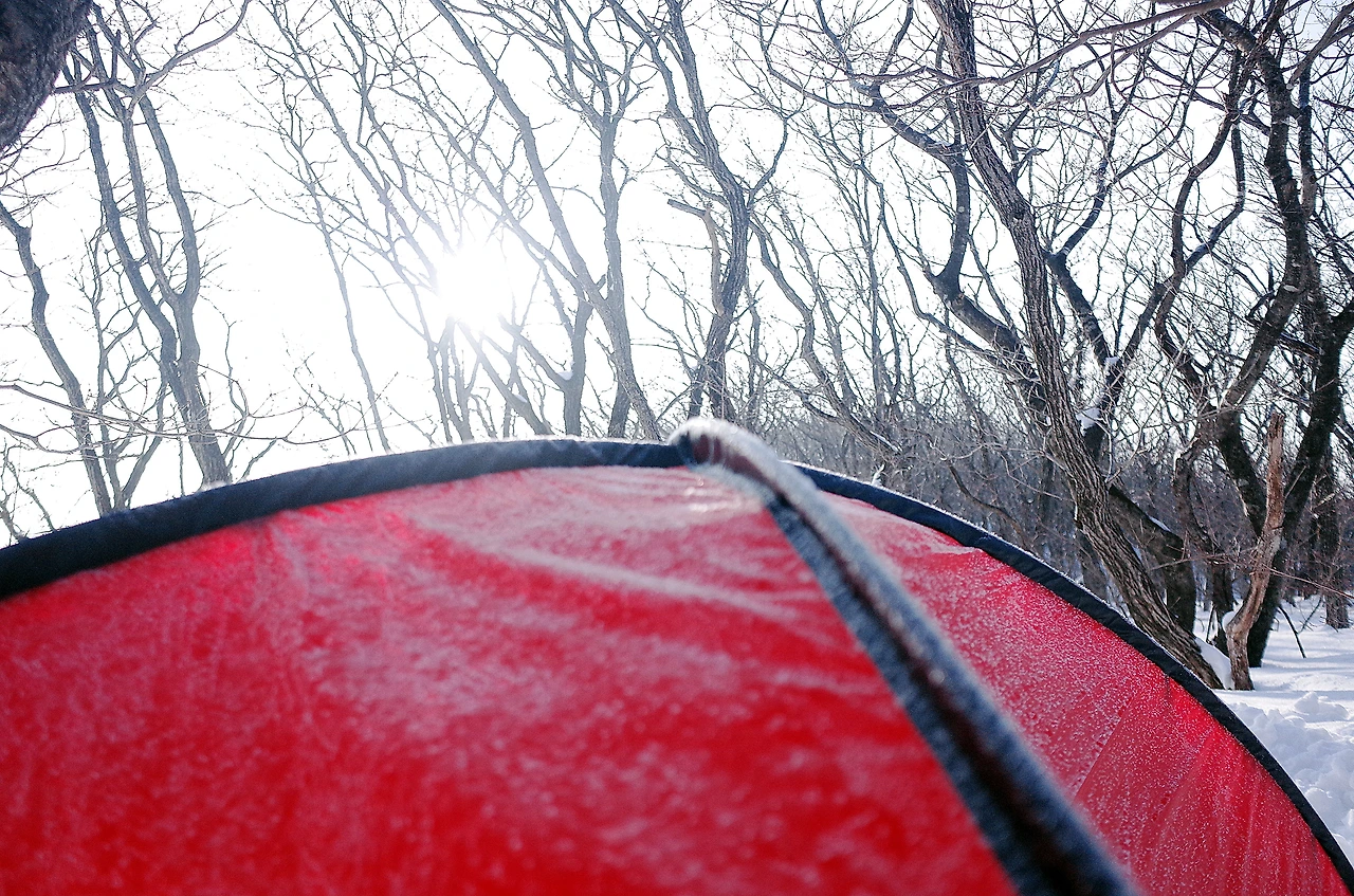 텐트를 피칭하고 이제야 한숨을 돌린다. 이렇게 많은 눈이 쌓인 곳에서의 비박은 처음이다. 쌓인 눈을 파내고 텐트를 피칭했더니 높게 쌓인 눈이 바람막이가 되어준다.