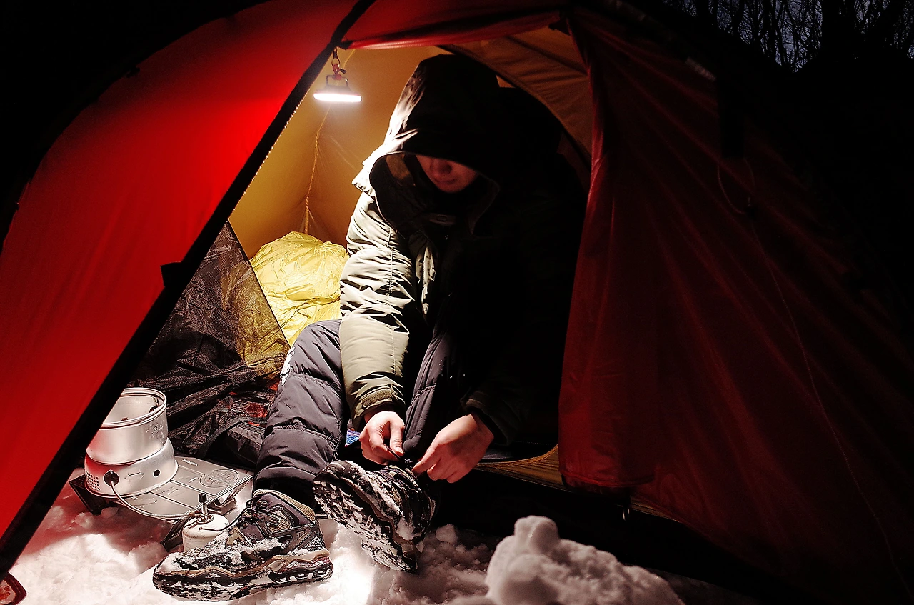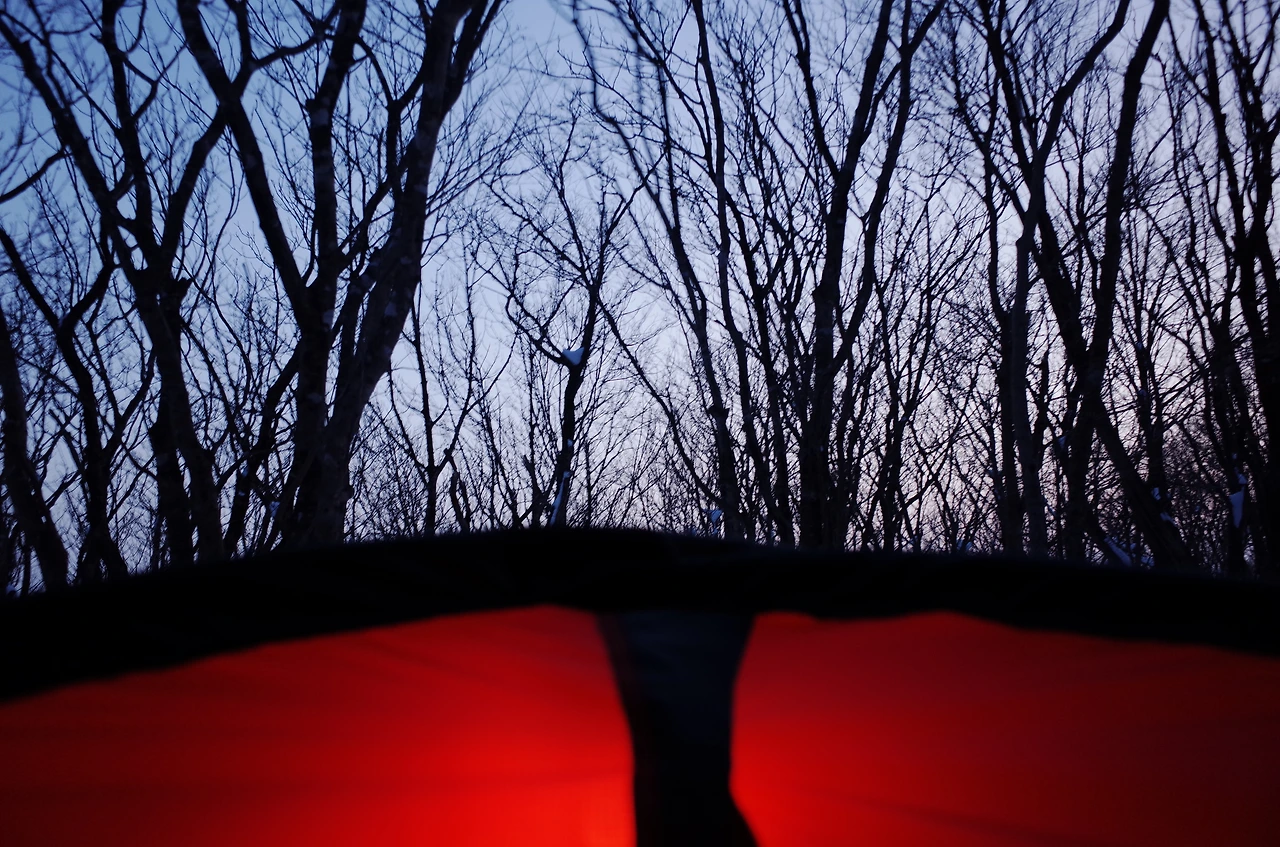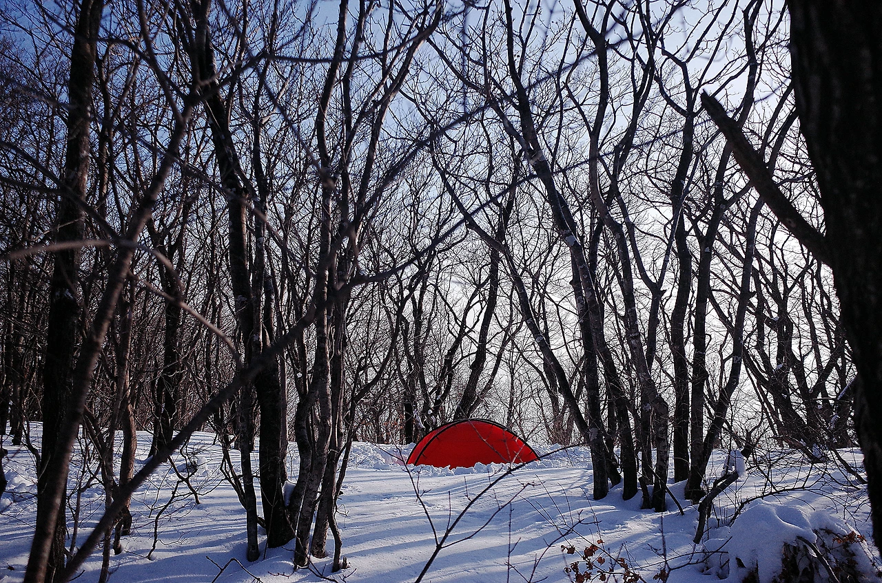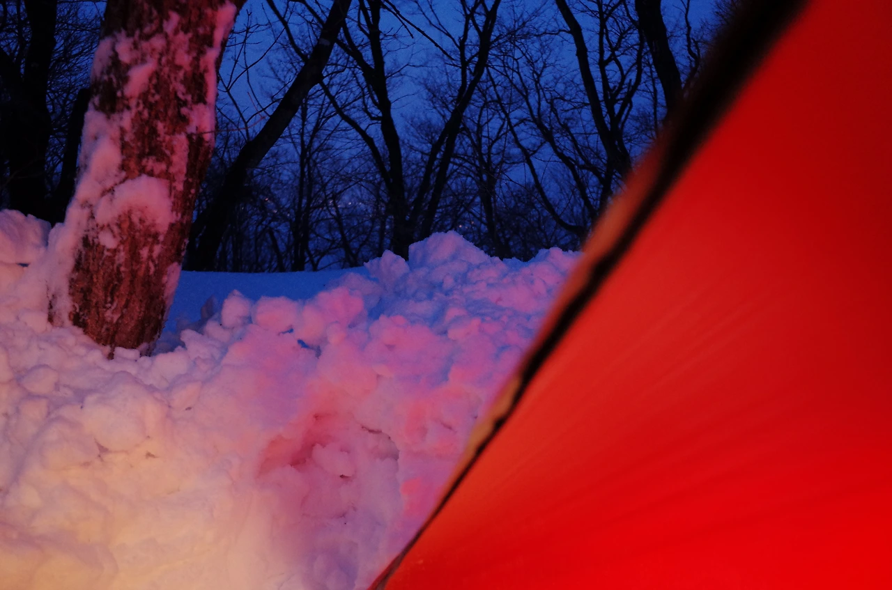 텐트를 피칭하고 이제야 한숨을 돌린다. 이렇게 많은 눈이 쌓인 곳에서의 비박은 처음이다. 쌓인 눈을 파내고 텐트를 피칭했더니 높게 쌓인 눈이 바람막이가 되어준다.