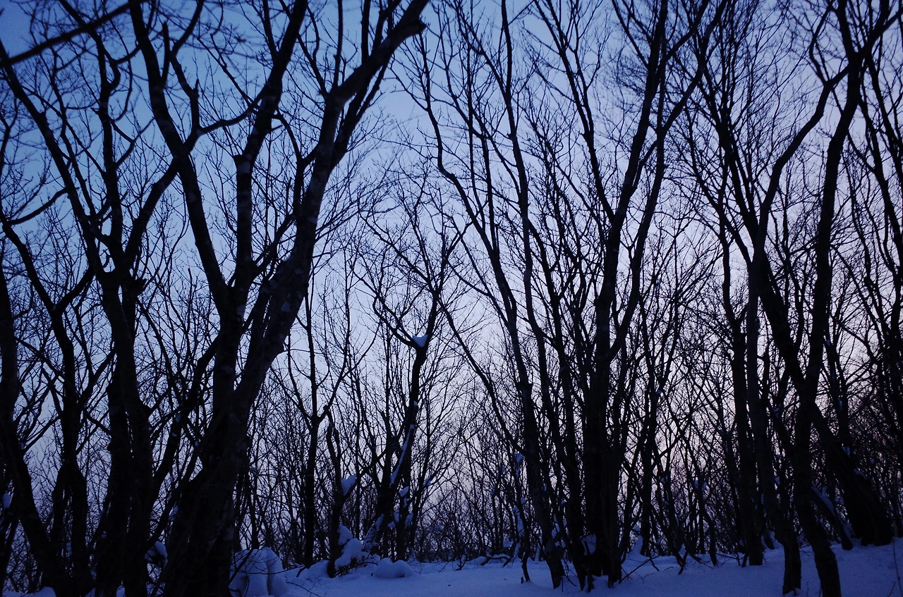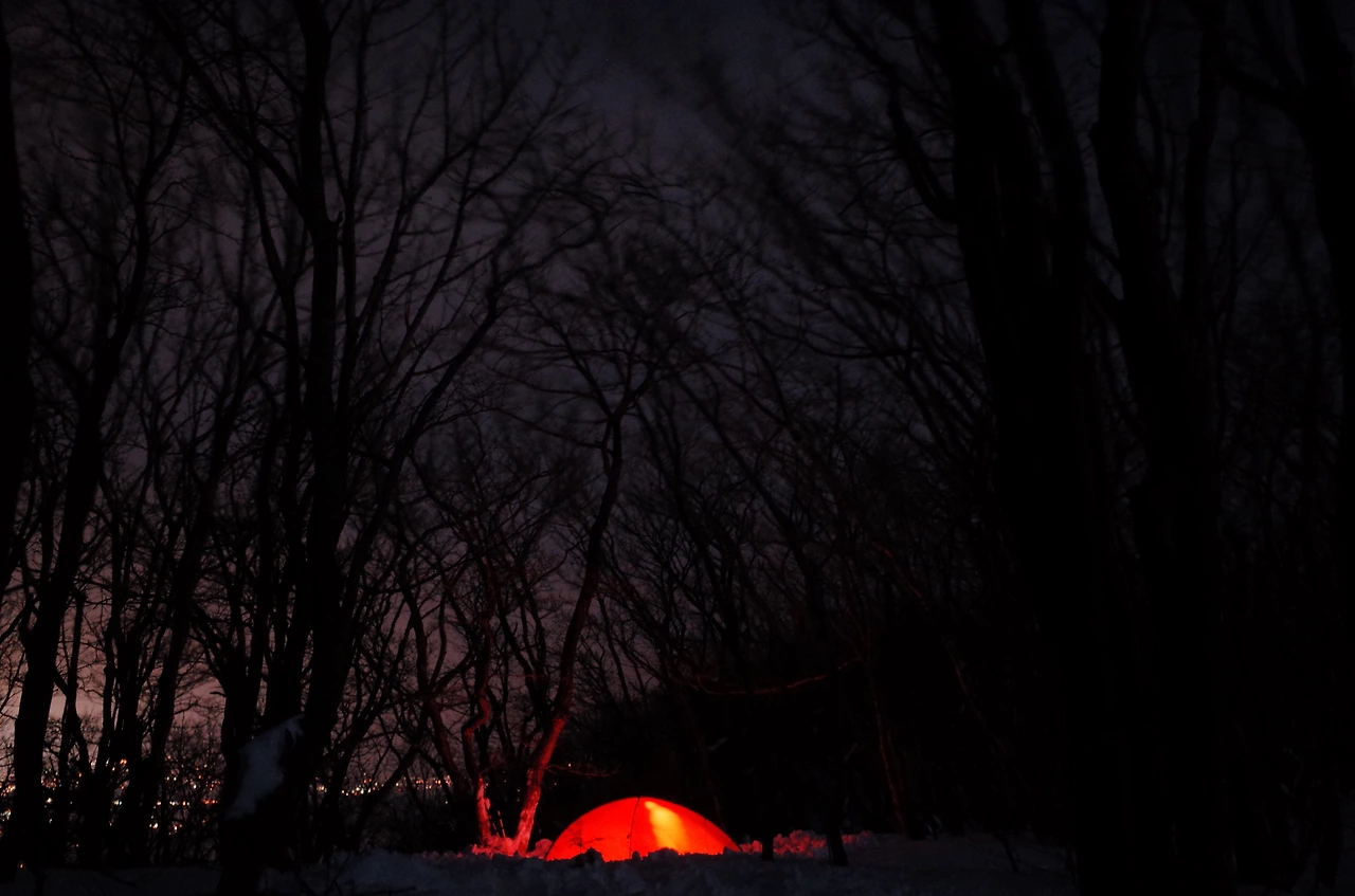 이윽고 선자령에 밤이 찾아왔다. 바람의 언덕 아래쪽 숲으로 내려와서 그런지 시내 쪽 불빛이 산속의 어둠을 밝히고 있다. 시내의 밝은 불빛 때문에 쏟아지는 별을 볼 수는 없었다.