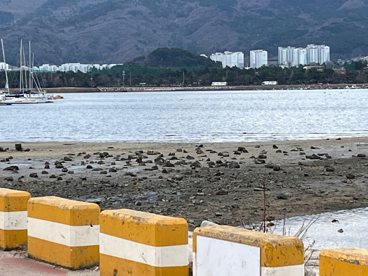 진해루 지나 더 가면 소죽도가 나온다. 바다가 보이는 찜질방이 있고 가을에 피는 벚꽃이 있는 공원도 보인다.