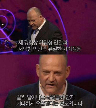 한 사람을 안다. 그의 취침 시간은 보통 새벽 3~4시, 기상은 보통 11~12시. 일부 미라클 모닝 신봉자들은 건강에 안 좋고 능률도 떨어질 거라며 고개를 저을 테지만 실제로는 그는 나이가 믿기지 않는 신체를 가졌고, 누구보다 건강하며, 많은 일을 하며, 하루를 밀도 있게 쓴다. 그의 생산활동은 거의 밤에 이루어지고, 누구보다 훌륭한 것을 만들어낸다. 모닝이냐 나이트냐 이전에 그는 자신의 매뉴얼을 알 뿐이다.