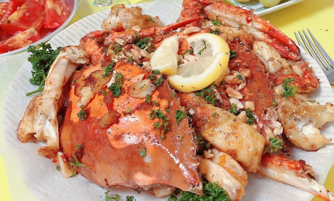 월남쌈 소스를 물과 1:1로 희석해서 파글 파글 끓이고, 자작하게 졸아들면 튀겨 놓은 꽃게를 투하해서 센 불에 재빨리 휘리릭 볶아 주어요. 이때 벌꿀 1스푼을 재빨리 넣어 주지요. 졸아든 소스로 코팅되면 불을 끄고 편마늘, 견과류, 다진 파슬리를 토핑해서 완성해요.