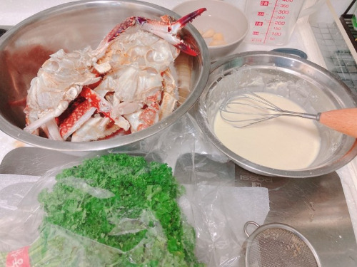 그런데 와인 한 병 마시기에 도전하던 그날. 그래도 자그마치 와인씩이나 되면 그럴듯한 요리도 있어야지. 재미 삼아 뭐라도 만들어 보자. 필리핀에선 알리망고라는 게요리가 천하제일 진미였는데, 아쉬운 대로 이거라도 해 볼까?