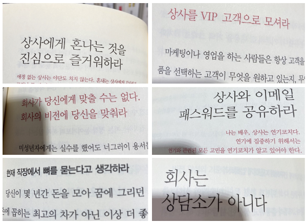 나는 통찰 능력이 좋은 편이라고 보긴 어렵지만, 다행히 아예 없지는 않았나 보다. 읽고 읽고 또 읽다가, 어느 날 이 책들의 진짜 의도가 돌연 궁금해졌다. 저자들은 진짜 선한 영향력을 주고 싶었을까. 캄캄한 세상에 내팽개쳐진 인생 후배들이 정말 안타까워서 한 줄기 빛이 되어 그들을 밝은 길로 인도하고 싶었을까.