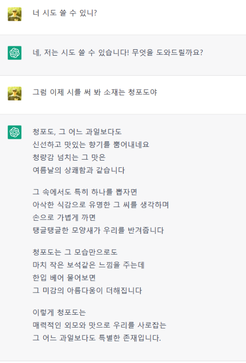 시, 소설, 에세이 등 문학이나 그림, 작곡 등 예술의 영역도 AI가 인간을 대신할 테니 이제는 변화하는 세상에 맞는 취미를 가지라고 많은 이들은 말한다. 그런데 궁금했다. 정말로 chat GPT는 시를 쓸 수 있을까.
