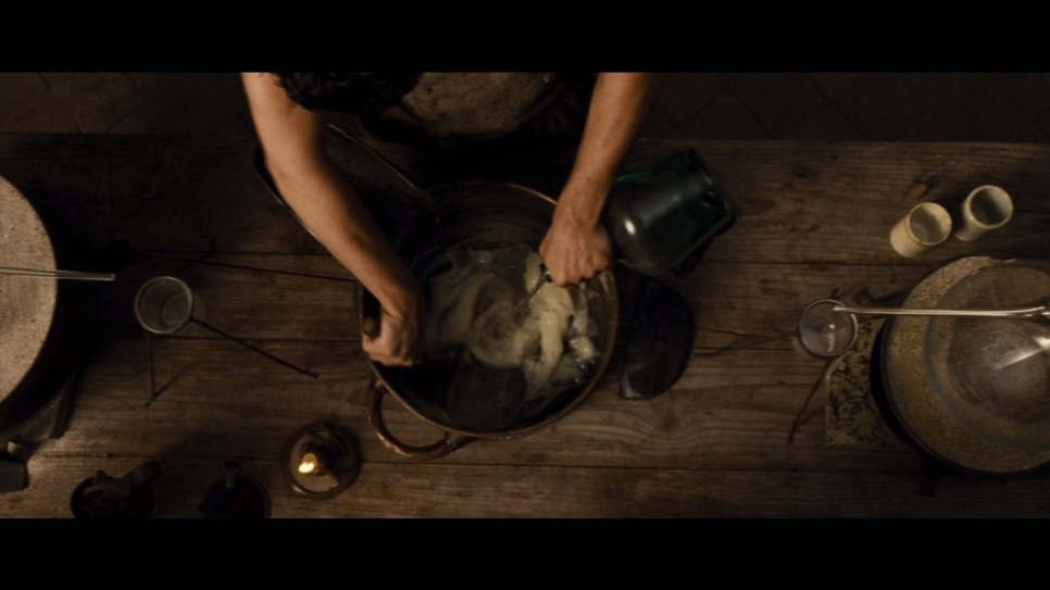 이 소설을 처음 읽었을 때는 고등학생이었다. 누군가에게 '향수'라는 소설의 줄거리를 듣고 영화를 먼저 보고, 그 다음에 소설을 읽었다. 장편이라서 분량이 꽤 두툼함에도 그 흡인력에 단숨에 다 읽었던 것 기억이 난다. 영화는 소설의 기반을 최대한 그대로 가져다 놓은 듯 했으며, 우려했던 후각에 대한 묘사를 줌과 생생한 효과음으로 소설 속 구축을 잘 살려 놓았다. 시간이 조금 흐른 지금 다시 영화와 소설을 접하니 느낌이 사뭇 다르다. 영화의 캡쳐본과 소설 속 장면을 매칭하여 작성 해 본다. 영화의 특성상 소설속에서 삭제된 부분이 많지만 제일 주축이 되는 부분들은 오롯하게 잘 살려냈다는 생각이 든다. 영화는 괴랄하면서도 섬뜩하지만, 때문에 가장 강렬했고 아주 인상적이었다.