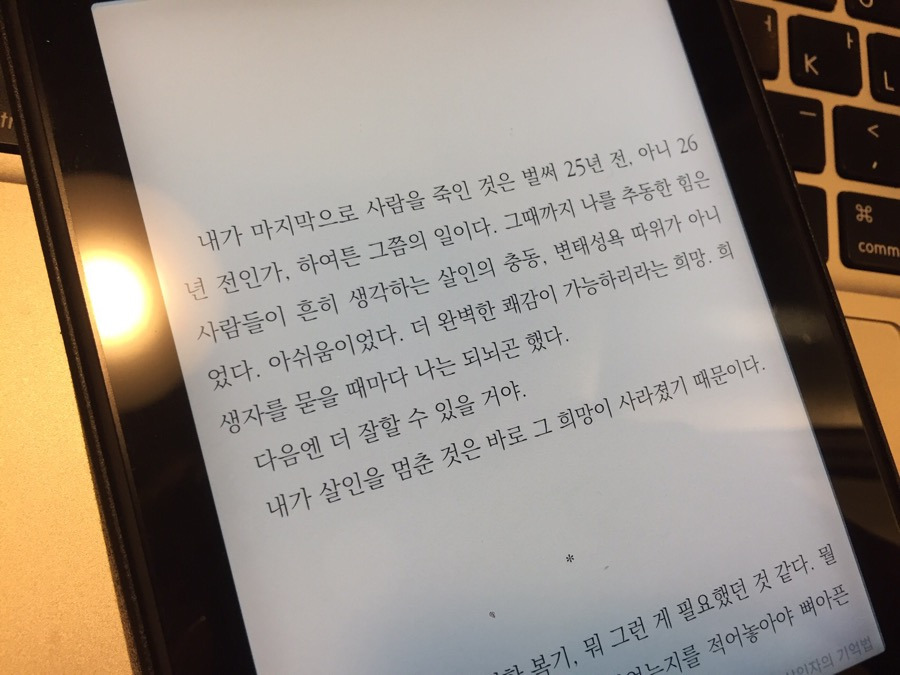김영하 작가의 '살인자의 기억법' 위 소설의 최대의 장점은 매우매우 잘 읽히는 점이다. 군더더기 없는 깔끔한 문장은 물론, 살인자의 음침하면서도 명료한 독백들이 꽤 개연성있게 흘러나온다. 짧은 분량도 그 서스펜스에 한 몫했다는 점도.