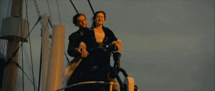 영화 타이타닉 메인 포스터는 영화 속 두 주인공 잭과 로즈의 백허그 장면이다.
