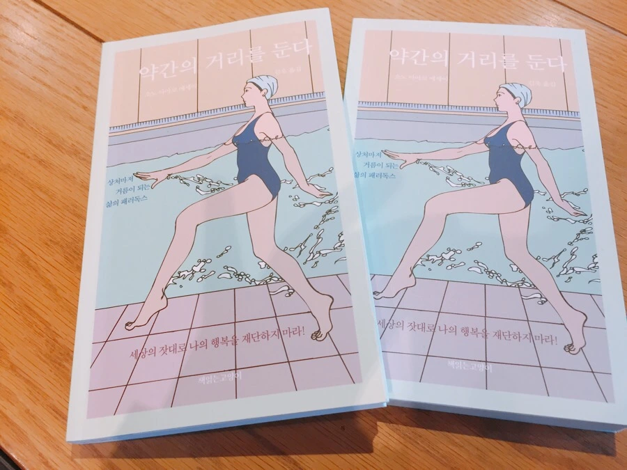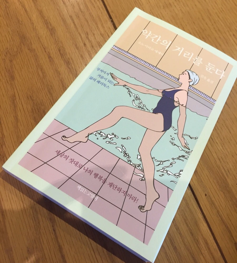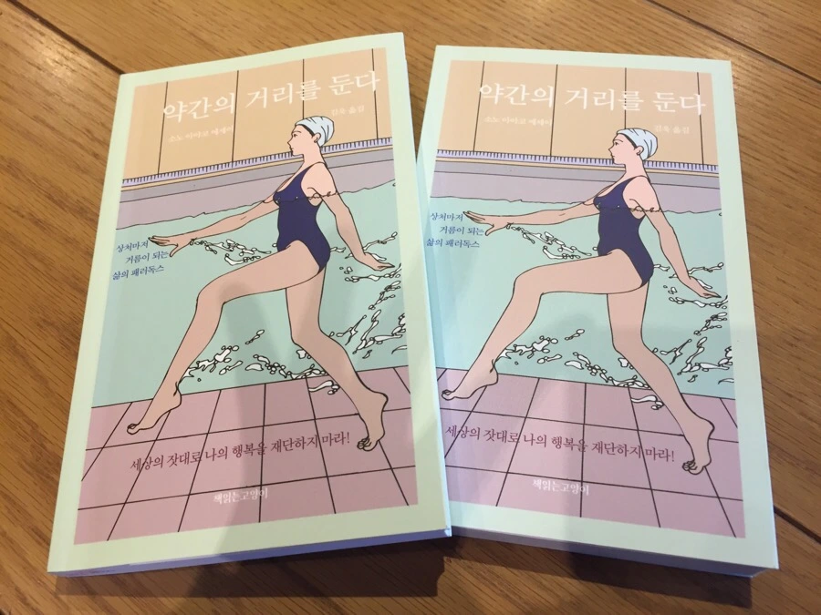 두어달 전부터 당연하게도 꼭 구입하고 싶었던 에세이 책이었다. 바로 위 소노 아야코의 에세이집, 물 속에서 한발자국 내딛는 다소 유쾌한 일러스트에 비해 약간은 시니컬하고 담백한 제목<약간의 거리를 둔다>