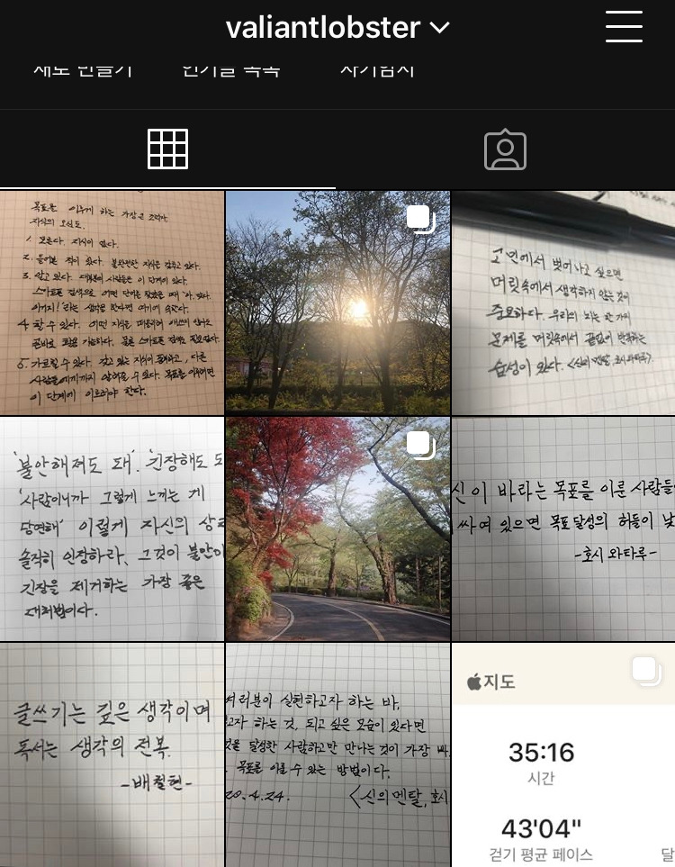 글쓰기, 명상, 필사, 독서, 운동 습관도 같은 방식으로 만들 수 있었다. 나와 관심분야가 같은 분들이 팔로우를 해주시고 '좋아요'를 눌러주시면서 서로 응원을 하고 있다. 가끔씩 댓글과 메시지로 소통도 한다. 내 사진과 아이들 사진만 올렸을 때와는 전혀 다른 용도로 SNS를 활용하고 있다. 기분도 좋고 성장에도 도움이 되니 일석이조다. 이런 방식으로 SNS에 중독된다면 적극 찬성이다.