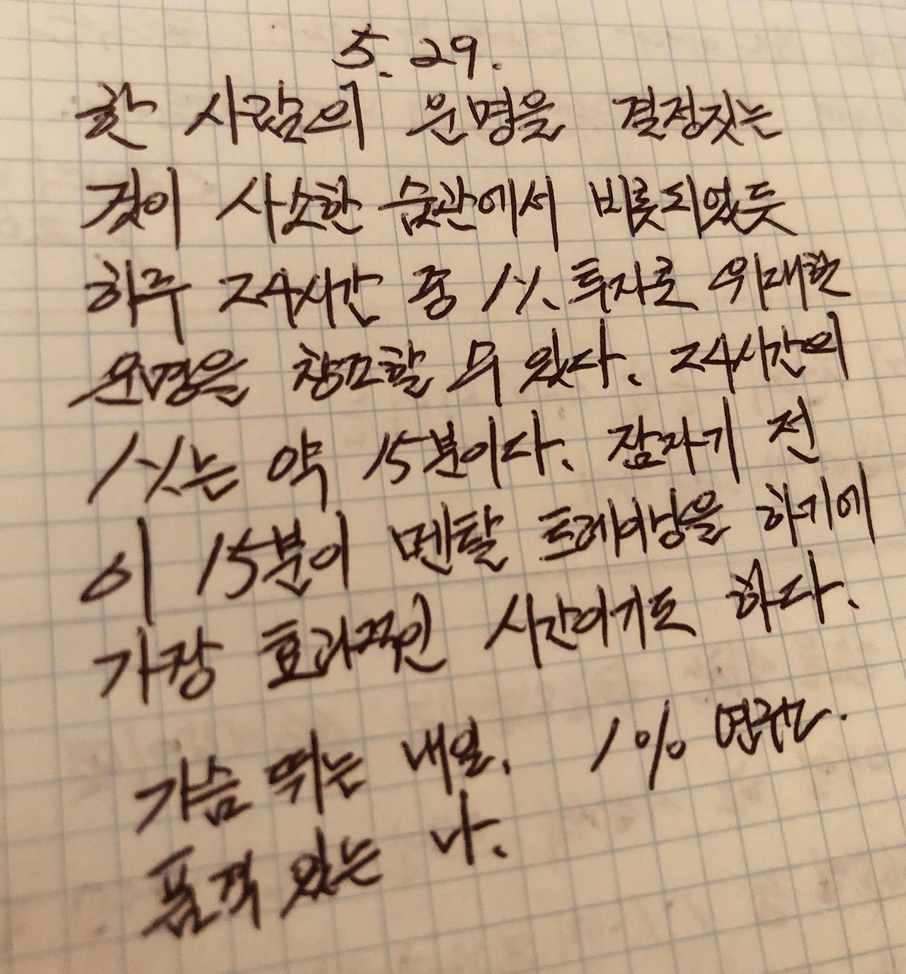 꿈도 꿈이지만, 가장 중요한 것은 꿈을 꾸고 난 후의 나의 감정상태였다. 꿈을 통해서 행복감을 느껴보았기 때문이다. 그리고 알 수 없는 자신감이 밀려왔다. 무엇보다 멘탈트레이닝의 효과를 16일만에 느껴볼 수 있어서 정말 좋았다. 계속해서 멘탈트레이닝을 꾸준히 실천해서 무의식과 의식을 통제하고 현실을 변화시키고 싶어졌다. 앞으로 100일동안의 과정을 자세히 기록하고 어떤 변화가 일어났는지 브런치에 쓰고자 한다. 마지막으로 김시현 저자는 책에서 다음과 같이 말했다.