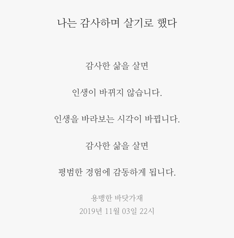 결혼을 하기 전에는 철부지 그 자체였다. 어리고 나약하고 겁쟁이였다. 결혼을 하고 한 여자의 남편이 되었고, 자녀가 생기면서 아이들의 아버지가 되었다. 훗날 아이들이 결혼을 하고 자녀를 낳으면 할아버지가 될 것이다. 결혼은 책임이라는 무거운 짐을 어깨에 짊어져야 하지만, 그 짐을 통해서 나라는 인간이 점점 더 성장하고 성숙해 짐을 느끼게 됐다. 아이의 임신 소식에 기쁘기도 했지만, 한 편으로는 걱정도 됐다. 잘 키울 수 있을까? 더 좋은 환경을 만들어 줘야 하는데 하나부터 열까지 걱정 투성이었다. 아이가 세상에 나오고 키우다 보니 그런 쓸데없는 걱정과 나태하고 게으른 허물은 벗겨지고 하늘을 힘차게 훨훨 날아오르는 나비처럼 부지런하고 열심히 사는 나로 변했다. 오늘도 아내와 아이들을 위해 어제보다 더 나은 내가 되기 위해 노력한다.