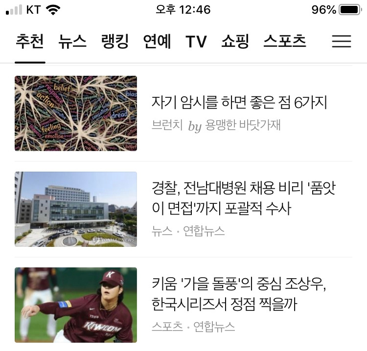 브런치는 카카오사에서 만든 플랫폼이다. 카카오는 검색 포털 서비스 다음을 가지고 있기 때문에 브런치에 올린 글들은 주로 다음 포털과 카카오톡 채널에 노출된다. 9월 20일 이후 네 개의 글이 노출됐었다. 티스토리 블로그에 100개가 넘는 글을 써도 검색 포털 메인에 노출된 적이 없었다. 카카오에서 브런치를 키우기 위해 전략적으로 브런치에 발행된 글의 노출을 적극적으로 추진하는 것 같다.