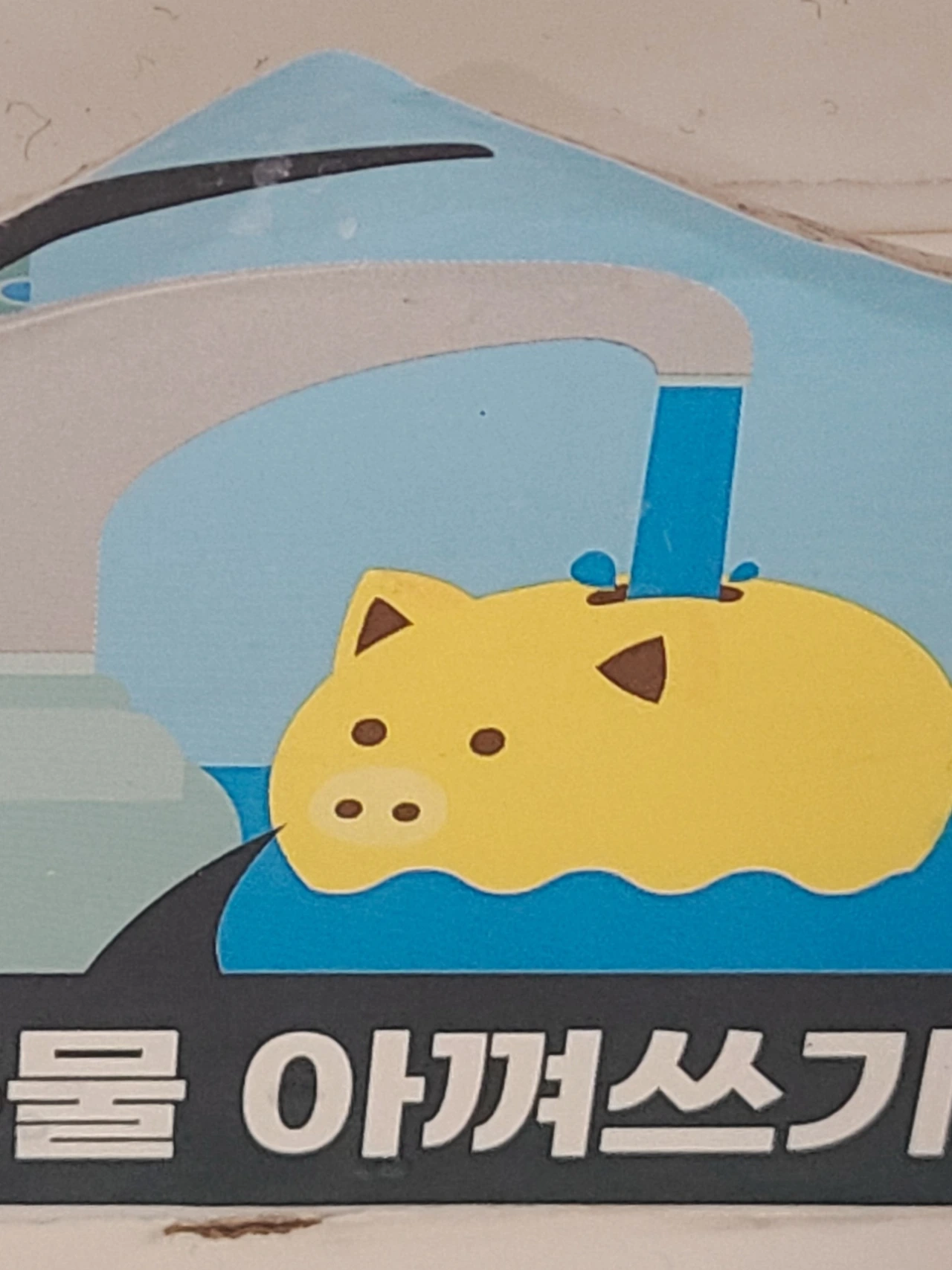 세면대와 눈높이가 엇비슷한 여자아이가 수도꼭지 바로 위에 붙어있는 그림을 물끄러미 보더니, 자신과 똑같이 생긴 여자 어른에게 돌발 퀴즈를 낸다.