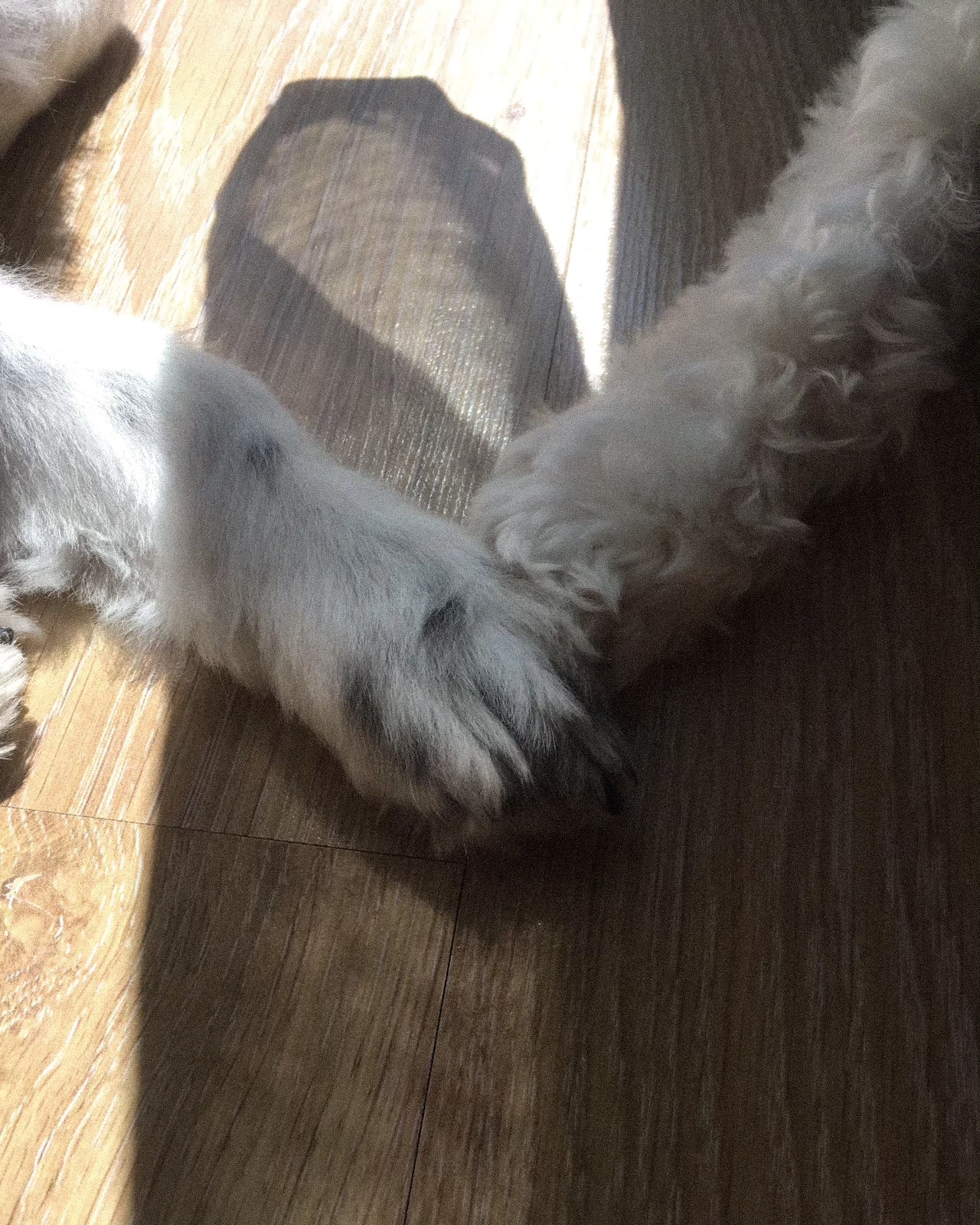 꼭 내 옆이 아니더라도 해피와 말랑이는 서로 붙어있기 일쑤였다. 함께 잘 뛰어놀다가도 뭐가 그리 불만인 건지 서로를 향해 왕왕 짖어댔고, 그러다가 언제 그랬냐는 듯이 또 붙어 있는다.