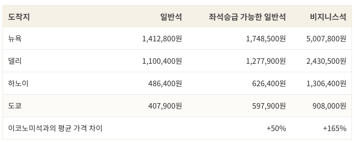 하지만 마일리지로 좌석 업그레이드를 고려 중이신 분께서는 유의하실 점이 있습니다. 이코노미에서 프레스티지로 업그레이드를 원하시는 분께서는 일반석에 비해 평균적으로 50% 더 비싼 좌석 승급이 가능한 항공권을 구매하셔야만 하다는 것입니다. 비록 추가적 현금 소비가 필요하지만 프레스티지석은 일반석에 비해 약 165% 더 비싸기 때문에 차액 대상 높은 마일리지 전환율을 적용받으실 수 있다는 점이 특별합니다. 또한 프레스티지석 전환에 필요한 마일을 보유하지 않으신 분께서는 더 적은 양의 마일로 업그레이드하시는 것도 좋은 방법일 수 있습니다. 반면에 프레스티지석에서 일등석 업그레이드는 따로 좌석 승급 가능 표 구매하실 필요가 없습니다.