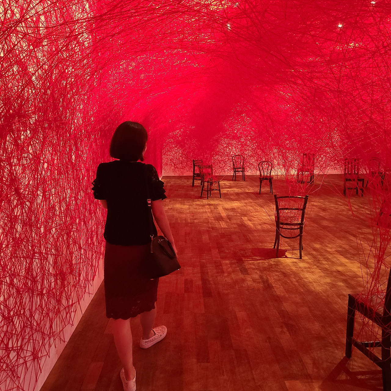 트위터에서 빨간 그림 보고 너무 인상적이어서 꼭 가고 말리라 하다가 결국 가게 되었던 전시회. 실타래와 의자의 의미가 정말 좋았고 부산 전시 때는 빨강이 아니라 검정 실로 도배된 작품이 있었다던데 빨강이라는 색깔이 주는 의미와 '죽음'을 '실'이라는 매개체로 표현한 점이 상당히 인상적이었다. 사실 조금 무서운 생각도 들어서 오래 홀로 그 공간에 있으면 무섭겠다 싶었다. 사회적 거리두기 준수 때문에 제한된 인원만 입장할 수 있었는데 그 제한된 시간 동안 굉장히 오묘한 감정이 들었다. 편혜영 작가의 소설 '아오이 가든'을 읽었을 때의 느낌이랄까.