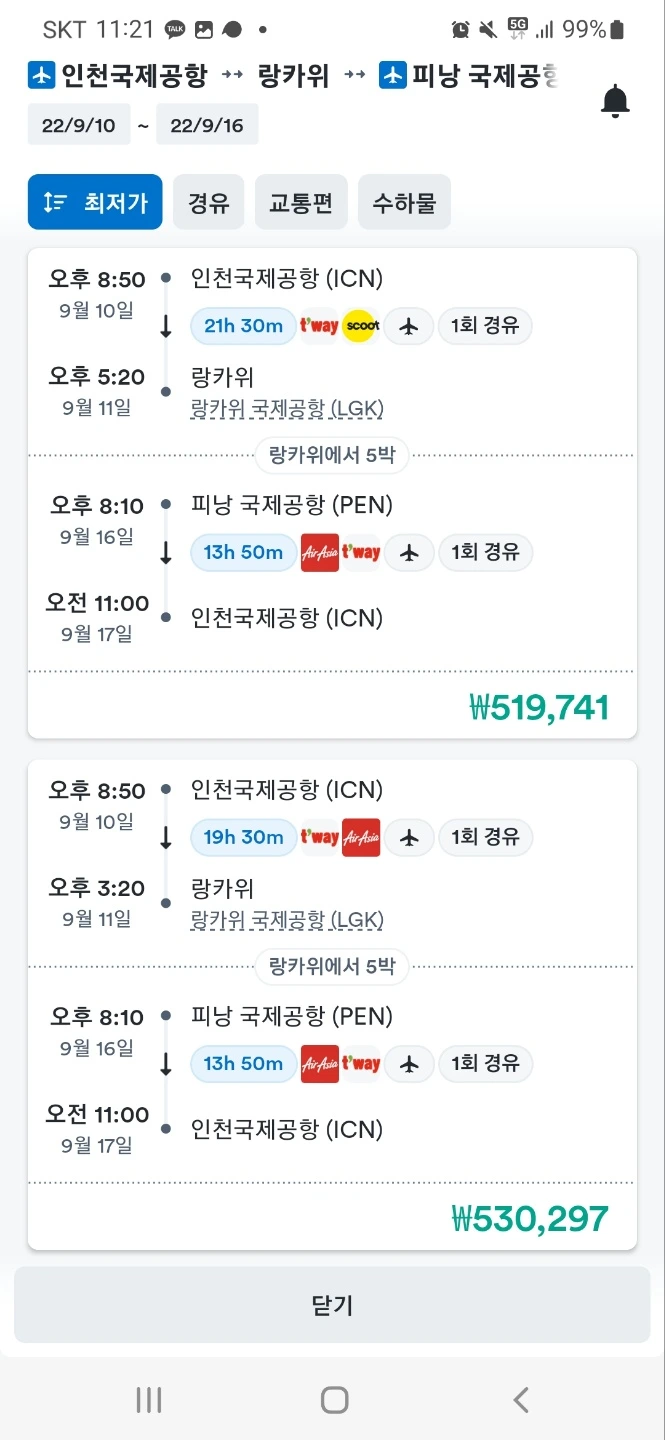 이번 여행은 2019년 12월 크리스마스 무렵 오스트리아 여행 이후 3년 만의 첫 여행이었다. 2020년에는 코로나가 터졌고 2021년에는 코로나가 여전했고 2022년인 지금도 코로나는 진행 중이지만 규제는 많이 풀린 상태라 어디론가 훌쩍 떠나고 싶었다. 물론 작년에는 제주도를 가는 것으로 아쉬움을 달랬지만 이국적인 정취를 느낄 수 있는 해외에 대한 갈증은 여전했다. 이번엔 정말로 해외로 여행을 떠나고 싶었다. 한여름인 8월 중순 즈음, 꿈에 그리던 이태리를 가느냐 지인이 있는 스위스를 가느냐 비행기 값이 상대적으로 싼(100만 원) 폴란드를 가서 부다페스트로 나오느냐 말레이시아 페낭을 가느냐 네 가지 생각을 동시에 하며 스카이스캐너로 비행기 가격을 찾아봤다. 9월 추석 연휴에 일을 해야 하는 상황이어서 근무 후인 10일 밤 비행기를 끊어서 18일에 한국으로 돌아오는 코스로 비행기를 검색했다. 결국 10일 밤, 17일 오전에 한국에 들어오는 선택을 했지만 모처럼 연휴를 낀 채 4일 휴가를 썼던 터라 휴가를 아낌없이 누리고 싶었다.