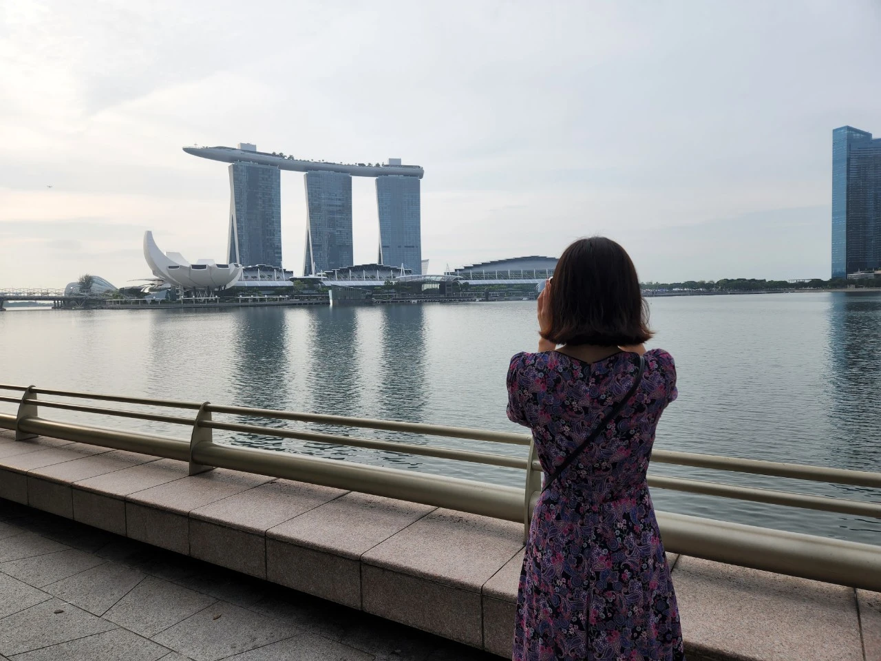 새벽 시간대라서 그랩이 잘 잡히지 않아서 세 번 정도 콜을 한 후에야 그랩이 잡혔고 다음날 마리나 베이 샌즈와 머라이언 동상 쪽으로 쉽게 갈 수 있는 곳에 구한 숙소로 향했다. 원래는 블로그 후기를 보고 캡슐호텔을 잡으려고 했으나 올 매진이라서 근처 숙소를 검색해보다가 발견한 숙소는 Bluewaters Pods 38 Hongkong st였다. 오래 머물 곳이 아니라 잠깐 잠을 붙일 곳이라서 게스트하우스 혹은 호스텔의 도미토리 정도 되는 곳에 숙박을 하기로 했다. 태국 여행 때 새벽에 도착했다가 게스트하우스 문이 잠겨있어서 못 들어갔던 경험을 떠올리며 미리 숙소에 레이트 체크인을 하겠다고 양해를 구했고 정문 비번을 미리 알고 무사히 숙소로 들어갈 수 있었다. 퀸 베드라 안락했지만 공용 샤워실이 두세 개뿐인 데다 지저분해서 별점 5점 만점에 3.5점 준다. 생각보다 일찍 깬 우리는 흐린 하늘을 보며 아침 일찍 7시 반 무렵, 숙소를 나섰다. 싱가포르를 한 번 갔다 온 남자 친구의 가이드로 마리나 베이 샌즈와 머라이언 동상을 쭉 둘러보고 마리나 베이 샌즈 내부도 둘러보았다. 마치 한강공원을 거니는 듯한 기분이 들었던 우리는 배가 고팠던 터라 글로리아 진스 카페에 들어가서 크루아상과 커피를 시켰다. 우연히 들어갔던 곳 치고는 괜찮아서 만족했다. 길을 거닐다가 Red Dot Design Museum도 보았는데 아쉽게도 오픈이 11시라 들어갈 수는 없었다. 분명히 아침만 해도 그저 흐린 날씨였는데 갑자기 비가 우두두 내리는 바람에 마리나 베이 샌즈 몰 안에 오래 있었다. 우리나라 파르나스 몰과 유사했다. 그때부터 싱가포르에서 랑카위로 비행기가 뜰 수 있을까 하는 걱정에 사로잡히기 시작했다. 싱가포르로 오기 전, 날씨를 검색해보았을 때 뇌우가 떠 있었던 터라 3시 55분에 스쿠트 항공 비행기가 못 뜨면 예약해둔 랑카위 숙소는 어떻게 하나 하는 생각에 암담해졌다. 게다가 스쿠트 항공은 잦은 지연, 결항으로 논란이 많은 항공사였기에 더욱 긴장이 되었다. 제발 비여, 멈추어 다오 하는 간절한 마음을 안고 숙소로 다시 향했다. 다행히도 비는 그쳤다.