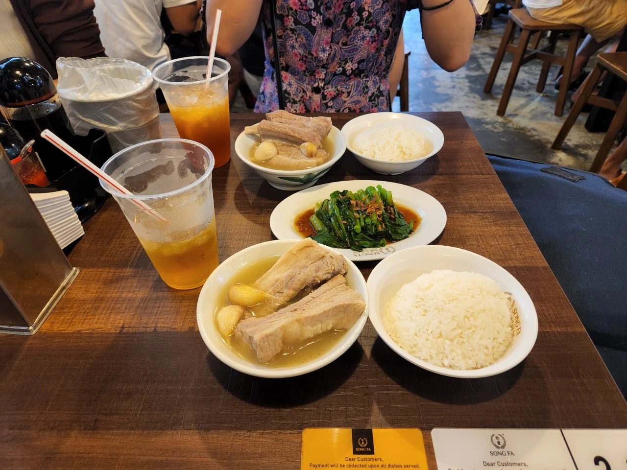 점심 즈음, 우리는 미슐랭인 송파 바쿠테로 향했다. 마침 숙소 근처에 본점이 있었던 터라 쉽게 찾을 수 있었다. QR로 주문하고 카드로 나중에 계산하는 시스템이었는데 QR로 주문하는 건 좋았으나 계산을 한꺼번에 카드를 모아서 가는 시스템은 너무 느려서 답답했다. 블로그 후기를 참고해서 공심채(Cai Xin)를 시키고 프라임 돼지 바쿠테 두 개를 시켰다. 그때는 몰랐는데 말레이시아 여행하면서 우리는 계속 한방 갈비탕 맛인 바쿠테 이야기를 계속했다. 맑은 국물에 갈비가 두세 개 정도 있을 뿐인데 깔끔해서 자꾸만 생각이 났다. 바쿠테여! 한국에 분점을 내주세요. 그럼 자주 갈게요. 한국으로 돌아오는 17일, 싱가포르에서 한국행을 타기 위해 기다릴 때 출장 온 한국 승객이 스튜어디스와 이야기하면서 바쿠테가 제일 인상적인 음식이었다고 말하는 것을 보면서 역시 사람의 입맛은 똑같구나 하는 생각이 들었다. 쥬얼 창이에 바쿠테가 있다고 들었는데 만약 조금 일찍 싱가포르에 도착했더라면 입국하기 전에도 우리는 송파 바쿠테에 가서 바쿠테를 먹었을는지도 모르겠다.
