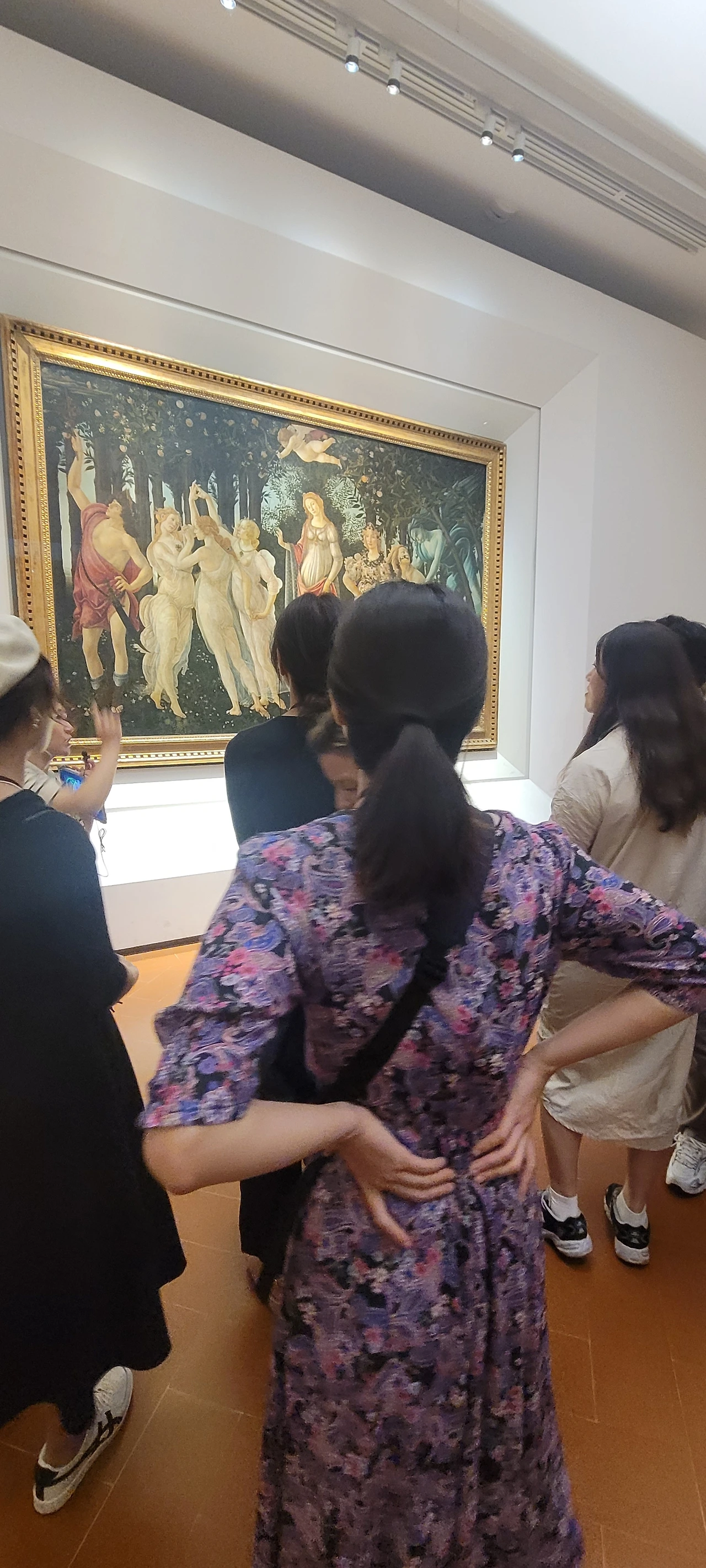 한국에서 마이리얼트립으로 예약해 둔 '우피치 미술관투어'의 모임장소는 사비나의 강탈상 앞이었다. 9시가 되자 한국인 가이드가 나타났고 '남부투어'나 '바티칸투어'에 비해 훨씬 적은 사람들과 함께 투어를 시작했다. 우리 포함 8명 정도였던 것으로 기억한다. 프랑스의 '루브르'나 영국의 '내셔널 갤러리', 오스트리아의 '벨베데레'에서도 하지 않았던 투어를 '우피치 미술관'에서 신청했던 이유는 전문 가이드와 함께라면 조금 더 깊숙이 미술관에 대해 알 수 있지 않을까 하는 기대감 때문이었다. 투어의 전체 내용이 기억나지 않으나 인상적인 것들이 몇 가지 있었다. 조각상이 신인지 인간인지 어떻게 판단하는지, 보티첼리 그림의 특징이 무엇인지, 미술사조에 어떤 변동이 있었는지 등등 여행한 지 두 달이 지난 지금도 어렴풋이 기억나는 것들이 있다. 엄밀히 말하면 이탈리아에서 했던 투어들 중 우피치 미술관 투어는 그나마 할 만한 가치가 있다고 생각했다. 그림은 보는 시각에 따라 달라지지만 어느 정도 가이드가 있으면 그림을 더욱 풍성하게 볼 수 있기 때문이다. 루브르 하면 떠오르는 그림이 '모나리자'이듯이 우피치에서 제일 기억에 남았던 그림은 보티첼리의 '비너스의 탄생'이었다. 파스텔톤의 색감과 유려함이 느껴져서 아름답다는 생각이 들었다.