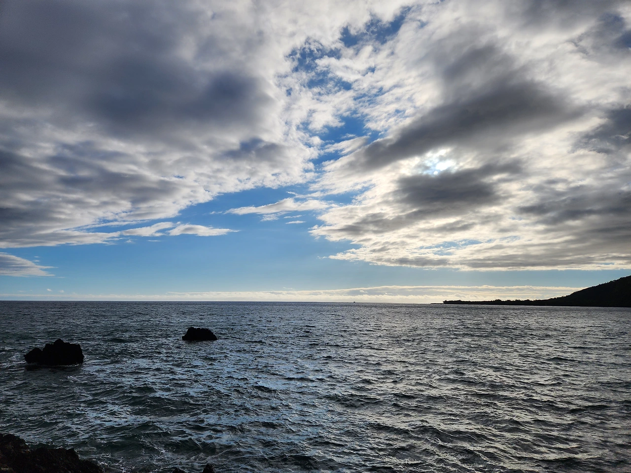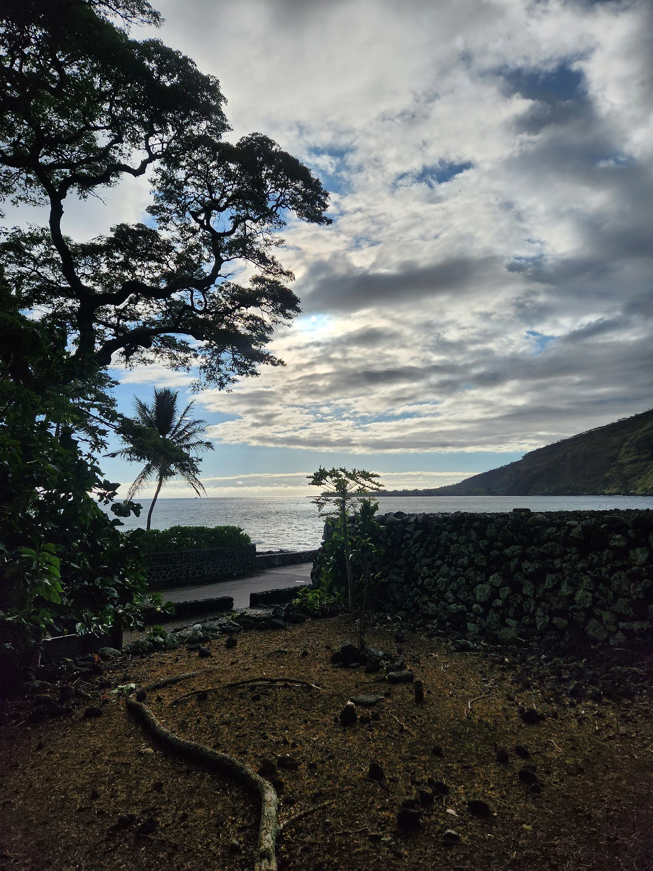 Hikiau Heiau 근처 샤워실이었는데 유명한 관광지가 아니었던 터라 사람도 거의 없었다. 물만 나오는 공용 샤워실에서 물로 헹궈내는데 선선한 바람이 불어오는 게 아닌가. 한적한 곳에서 바람이 온몸을 휘감는데 어제에 이어 '천국인가' 하는 감정을 또 느꼈다. 날씨가 어찌 이리 좋을 수 있나 싶어서 돌담에 누워서 우두커니 하늘만 바라봤다. 정말 기분이 째질 듯이 좋았다. 감정을 담아둘 수 있는 기계가 있다면 지금 이 순간의 감정을 담아서 두고두고 보고 싶다는 생각이 들 정도랄까. 감정변화가 크게 없는 남편도 어제 일몰에 이어 지금 이 순간이 정말 좋다고 했다. 예상치 못했던 순간이어서 더 좋았던 것 같다. 애초에 스노클링을 할 생각도 없다가 스노클링을 했는데 스노클링 자체보다 샤워를 하고 나서 크나큰 희열감을 느꼈달까. 굉장히 오묘했다.