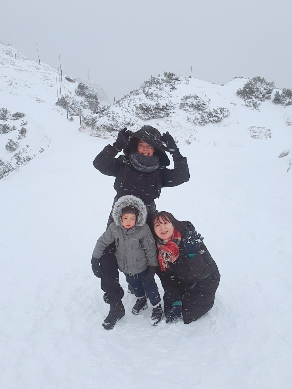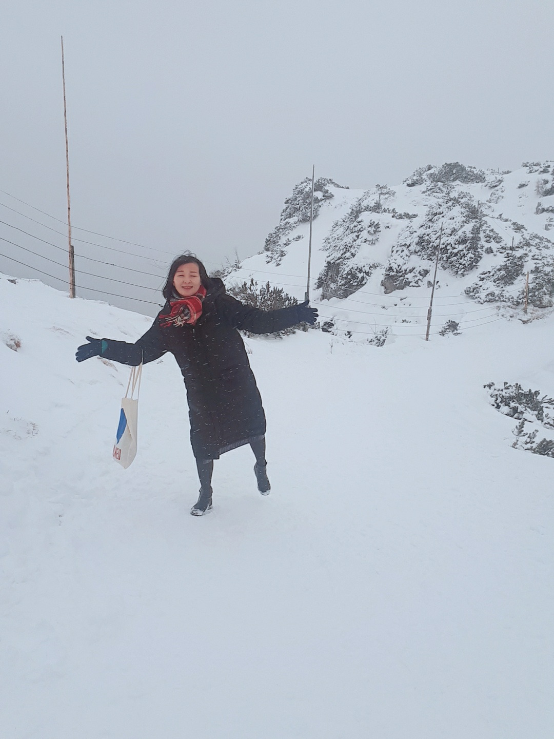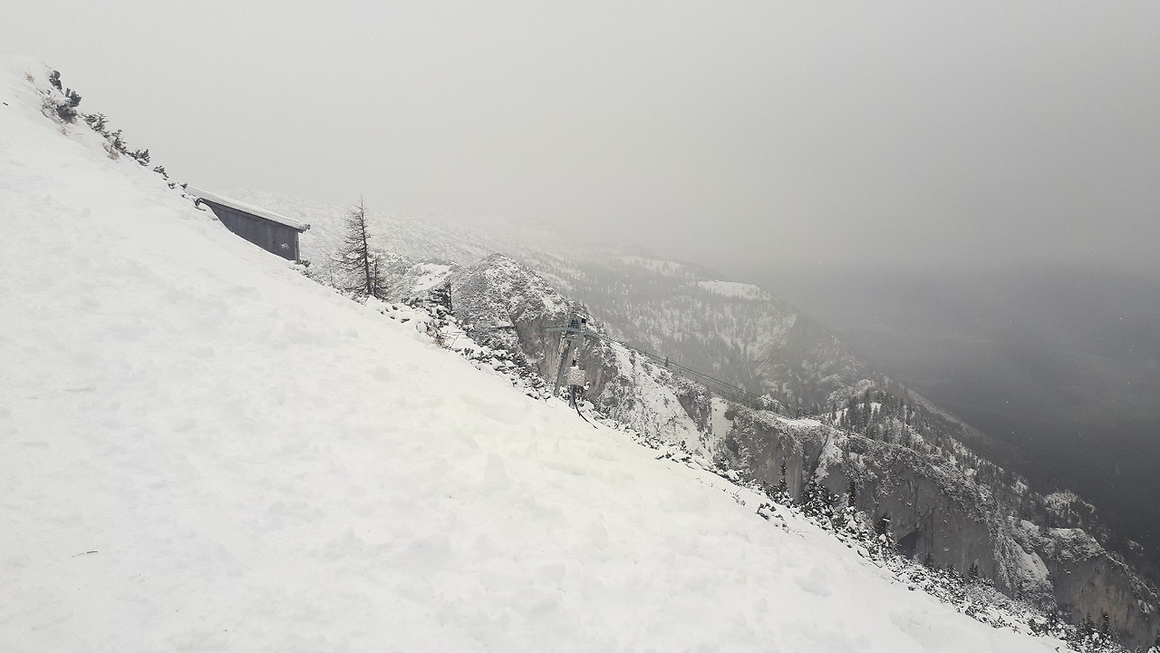 우유니 사막에서도 그렇고, 타이베이 여행을 할 때도 그렇고 여행 중에 날씨 운이 안 좋을 때는 기분이 썩 유쾌하지는 않지만 주어진 상황 속에서 최선의 방법을 찾아야만 했다. 한 시간 정도를 고민한 후, 25번 버스를 타고 운터 스베 르크를 가기로 했다. 운터 스베 르크에 가서 케이블카만 타도 잘츠부르크 카드를 제대로 사용한 것이라는 후기에 끌렸다. 그리고 내내 날씨가 흐린 상황이라면 비가 잠깐이라도 그친 지금, 운터 스베 르크를 가는 것이 현명하지 않을까 하고 생각했다. 25번 버스를 타고 운터 스베 르크에 갔고 그곳에서 설산과 마주했다. 정말 무계획으로 잘츠부르크에 롱 패딩을 장착하고 갔던 나는 롱 패딩 안에 코트, 코트 안에 롱치마를 입었고 발목까지 오는 부츠를 신은 채 설산 앞에 섰다. 십자가가 있는 곳까지 걸어가기에는 내 의상이 받쳐주지 않았다. 케이블카를 타고 고지에 올랐을 때는 눈이 꽤 내리고 있었고 안전망도 제대로 구축되어 있지 않았기 때문에 부츠가 미끄러지면 아찔한 상황까지 마주해야 할는지도 모른다고 생각했다. 트래킹을 좋아하는 나는 저 십자가까지 가고 싶은 마음이 굴뚝한 나머지 부츠를 벗고 걸어가 볼까 하는 미친 생각을 0.1초 정도 하다가 아니야. 추운데 저까지만 가자 하고 부츠가 용인할 수 있는 지역까지 걸어갔다. 스키나 썰매를 타도 될 정도로 경사가 진 곳도 있었다. 날씨만 좋으면 뷰가 최고이지 않을까 하는 생각이 들었다. 여행 중에 계획의 중요성을 처음 깨달은 순간이었다. 그럼에도 불구하고 운터 스베 르크가 좋았던 것은 케이블카를 타면서 느꼈던 아찔함 때문이었다. 해발고도가 높은 보고타에서도 케이블카를 타면서 겁이 나지 않았던 나는 1,776M까지 올라가는 케이블카를 10분 정도 타면서 조금은 무섭다고 생각했다. 다 왔나 싶었는데 슈웅 하더니 쭈욱 올라가더라고. 끊기면 어떡하지? 하는 쓸데없는 생각을 잠깐 하면서 덜덜거리면서 사진을 찍었다. 운터 스베 르크가 독일과 오스트리아의 경계라고 하니 날씨가 좋을 때는 알프스의 풍광, 독일의 모습 모두를 두 눈에 담을 수 있을 것이다.