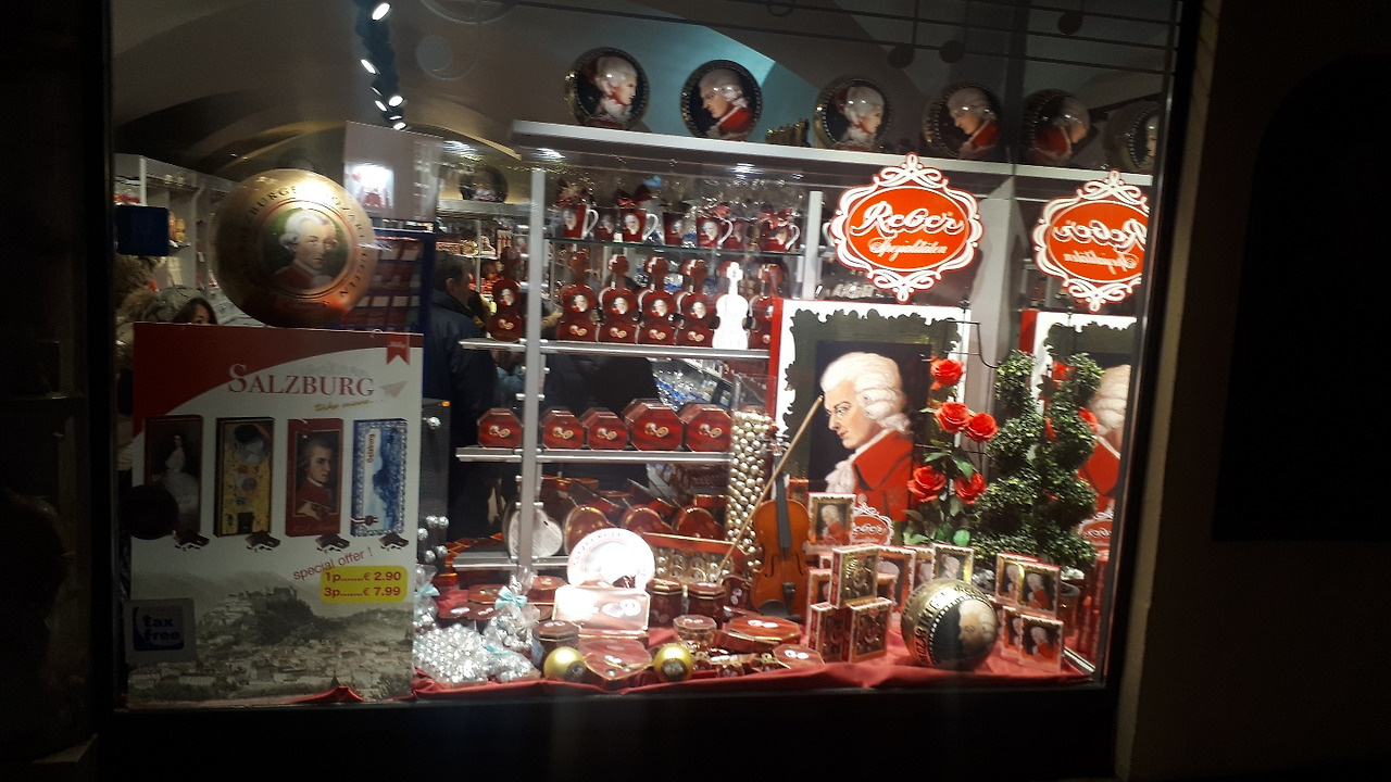 카페 모차르트는 유명한 카페 중 하나, 모차르트가 새겨진 초콜릿이 지역 명물
