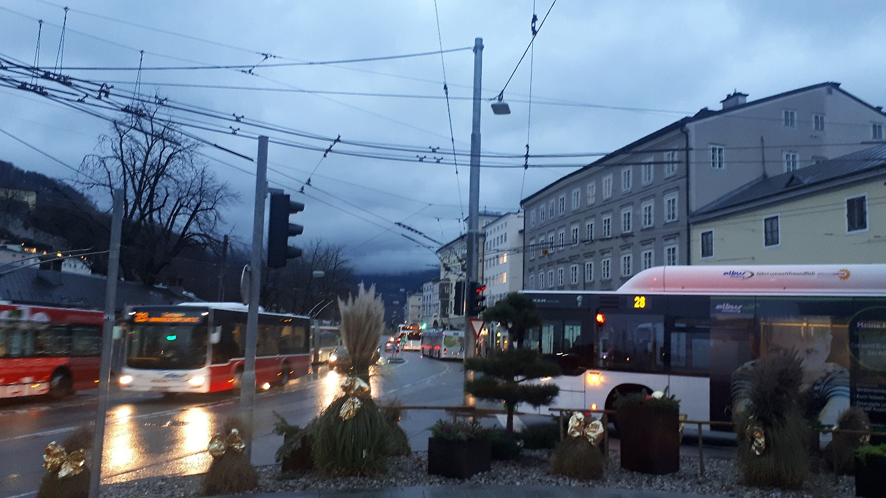 백이면 백 이런 후기가 있어서 한국에서 미리 구매하고 갔다. 잘츠부르크 카드는 잘츠부르크 역에 도착해서 인포메이션 센터를 가면 바우처를 확인하고 카드로 교환해준다. 예쁘게 생긴 카든데 뒤에 개시 시간과 이름을 적어야만 한다. 원래 아침 7시 40분 기차를 타려고 했지만 늦게 일어나서 8시 40분 기차를 타서 11시가 넘어서 잘츠부르크에 도착했던 나는 이 카드를 언제 개시할지 고민했다. 오후 1시에 개시하면 다음 날 오후 1시까지 정직하게 24시간 동안 쓸 수 있는 카드여서 카드 없이 들어갈 수 있는 미라벨 정원은 카드의 시간이 끝나고 나서 찾아가도 된다. 대중교통은 전부 다 무료는 아니고 해당되지 않는 노선도 있으니 잘 체크해야 한다. 다음 날 아침 트램에서 잘츠부르크 카드 검사 확인을 당했거든. 비엔나에서는 24시간 교통권을 썼지만 검사를 당했던 적이 없는데 잘츠부르크의 경우, 불시에 검문을 당하기 쉽다. 후기를 보고 갔던 터라 아무렇지 않게 카드를 건넸고 시간을 체크하더니 다시 돌려주더라고. 그런데 일반 시민이 오히려 돈을 안 내고 타서 검사관이랑 실랑이를 하더라고. 할머니셨거든. 투닥거리다가 검사관들은 버스에서 내려서 다른 버스를 타는 것 같았다. 검사관이라고 얼굴에 쓰여 있지 않다. 검사복을 입고 있는 것도 아니고 그냥 일반인처럼 옷을 입은 채로 여러 명이 함께 다니는 것처럼 보였다. 잘츠부르크에 도착해서는 일단 비가 오길래 숙소로 향했고 짐을 풀고는 일정을 짰다.