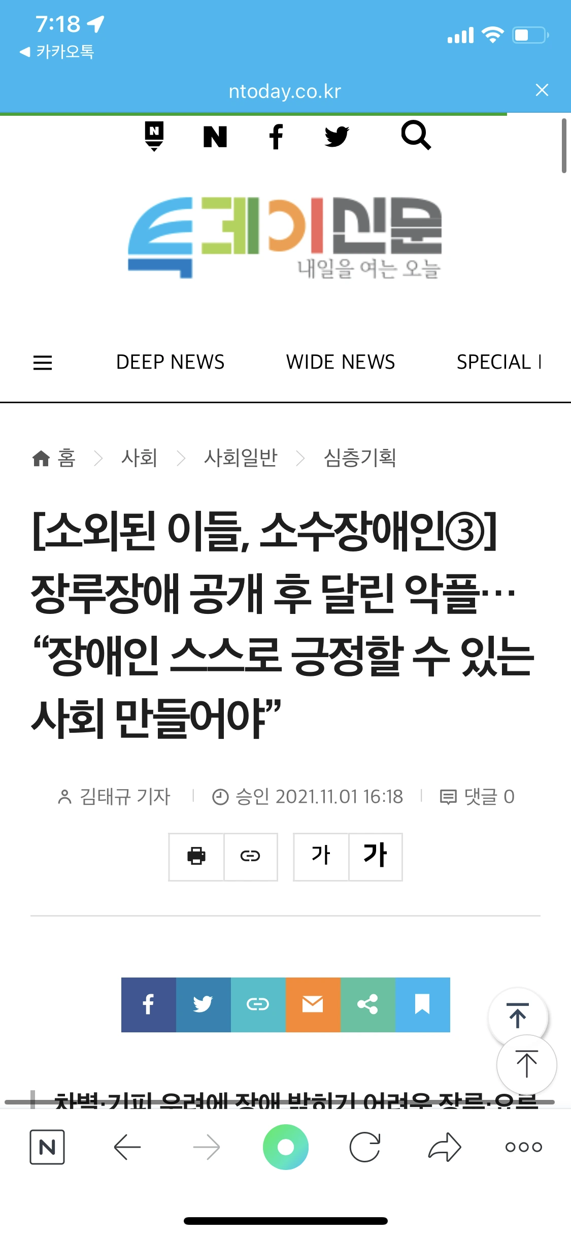 내게는 인공 장루에 대한 희미한 기억이 하나 있다. 한 연예인이 인공 장루를 달고 방송에 출연했는데, 이를 후속으로 다루는 심층 기사였다. 이제야 그 기사를 다시 들춰보게 됐는데, 남의 일이 아닌 우리 일이라 생각하니 한 문장 한 문장 곱씹게 된다. 어느 지점에서는 나도 모르게 고개를 끄덕이고 있다. 이 기사의 주인공인 한아름님은 방송 출연 후 악성 댓글 세례를 받았다고 한다. “더럽다”, “방송에 나와 왜 똥 얘기냐”, “똥 얘기 그만해라”는 얘기였는데, 누군들 방송에 나와 똥얘기를 늘어놓고 싶었을까. 한아름님은 장루장애에 대한 인식을 조금이나마 바꿔보고 싶어 방송 출연을 결심했다고 한다.