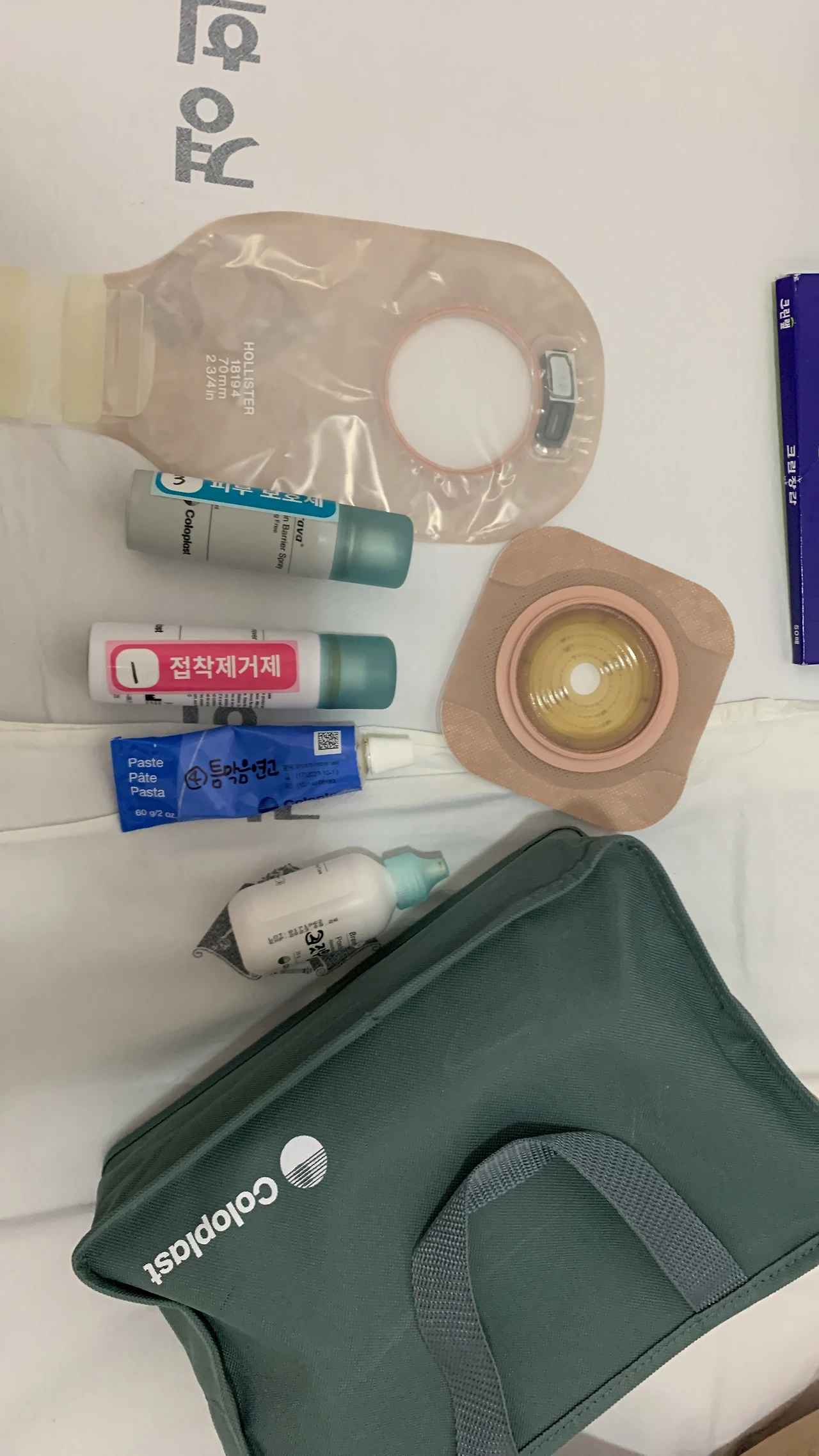 본격적으로 인공 장루를 교체할 때 필요한 도구들이다.